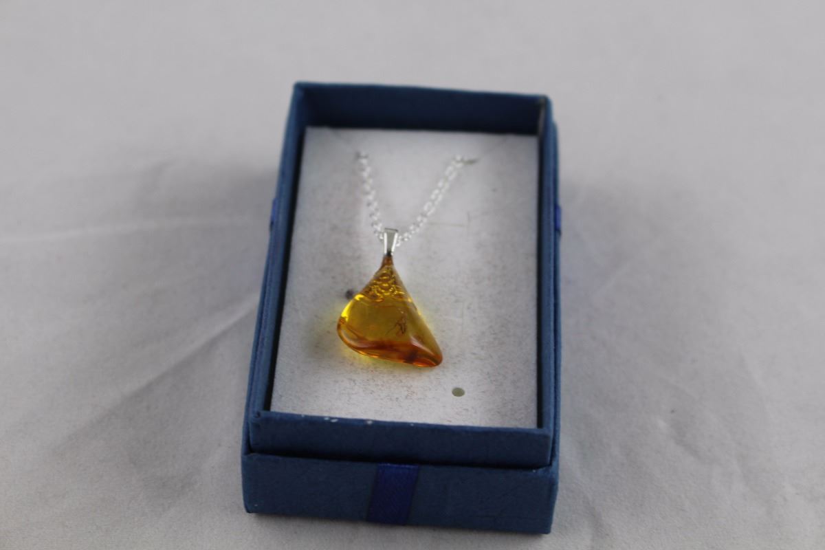 ORANGE BALTIC AMBER NECKLACE, STERLING SILVER, INCLUDES FOSSIL INSECT INCLUSIONS, INCLUDES $300 CERTIFICATE
