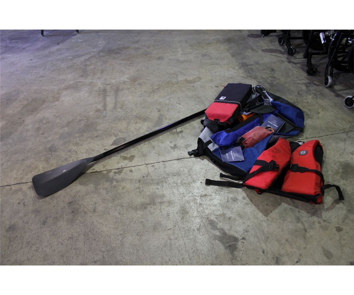ORANGE NRS INFLADABLE STAND UP PADDLE BOARD WITH PADDLE, PUMP, LIFE JACKET, ANCLE CHAIN, FLOTATION DIVICE AND BACK PACK
