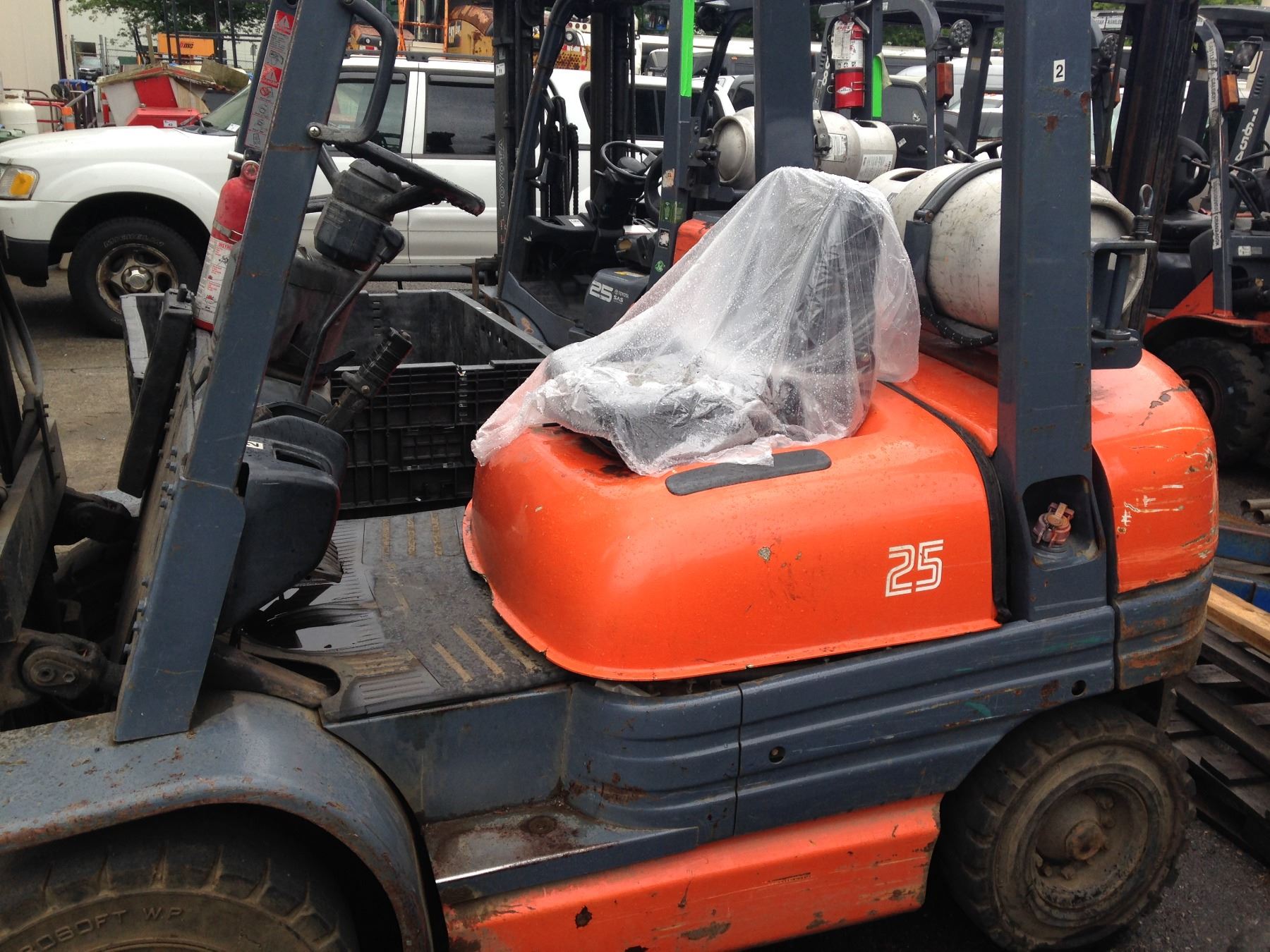 ORANGE TOYOTA PROPANE FORKLIFT MODEL 42-6FGU25, 4,500LB, 3 STAGE MAST, SIDE SHIFT,48" FORKS (NEW SEAT MUST BE ATTACHED)S/N60621