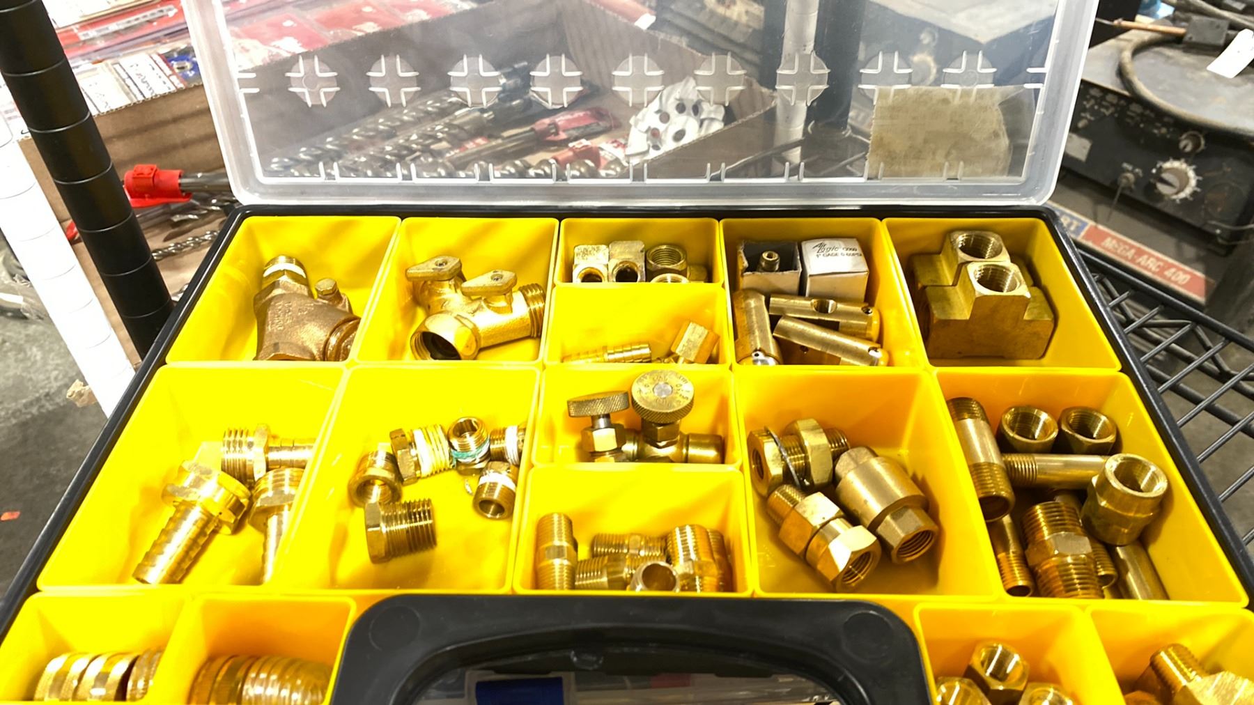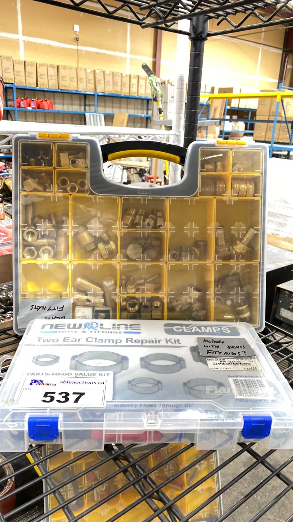 ORGANIZER CASE OF BRASS FITTINGS AND NEW LINE TWO EAR CLAMP REPAIR KIT