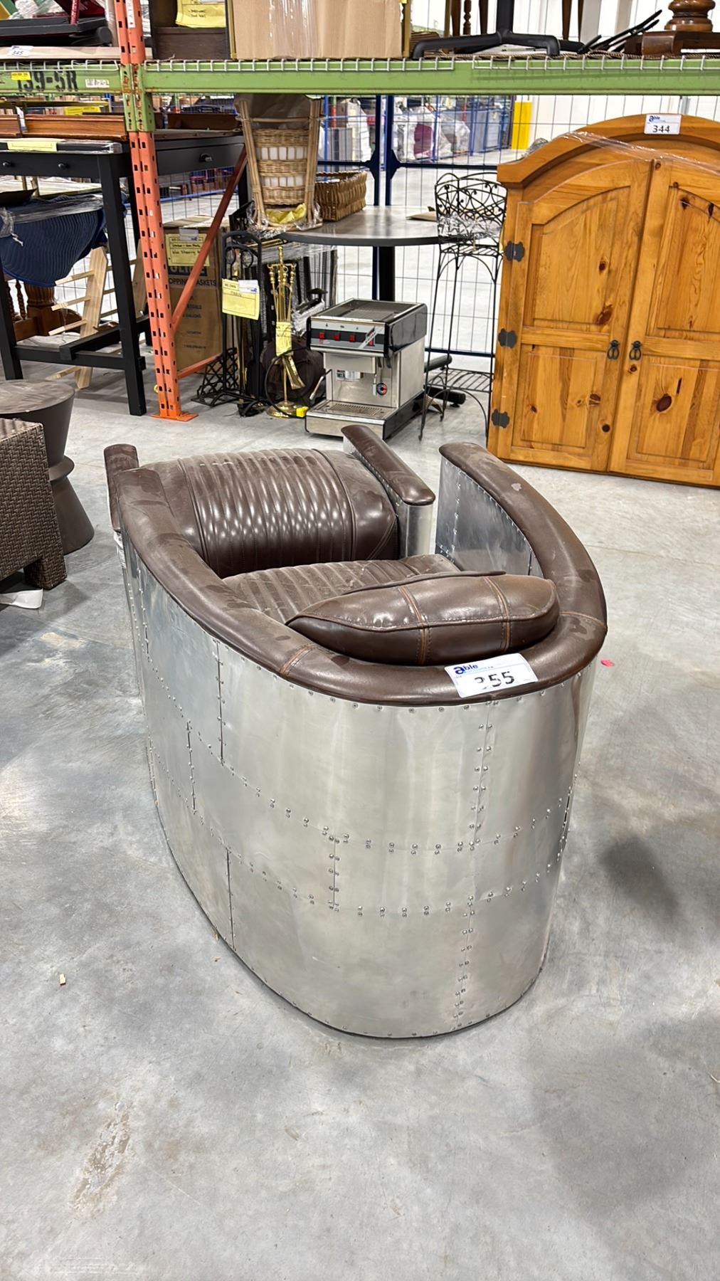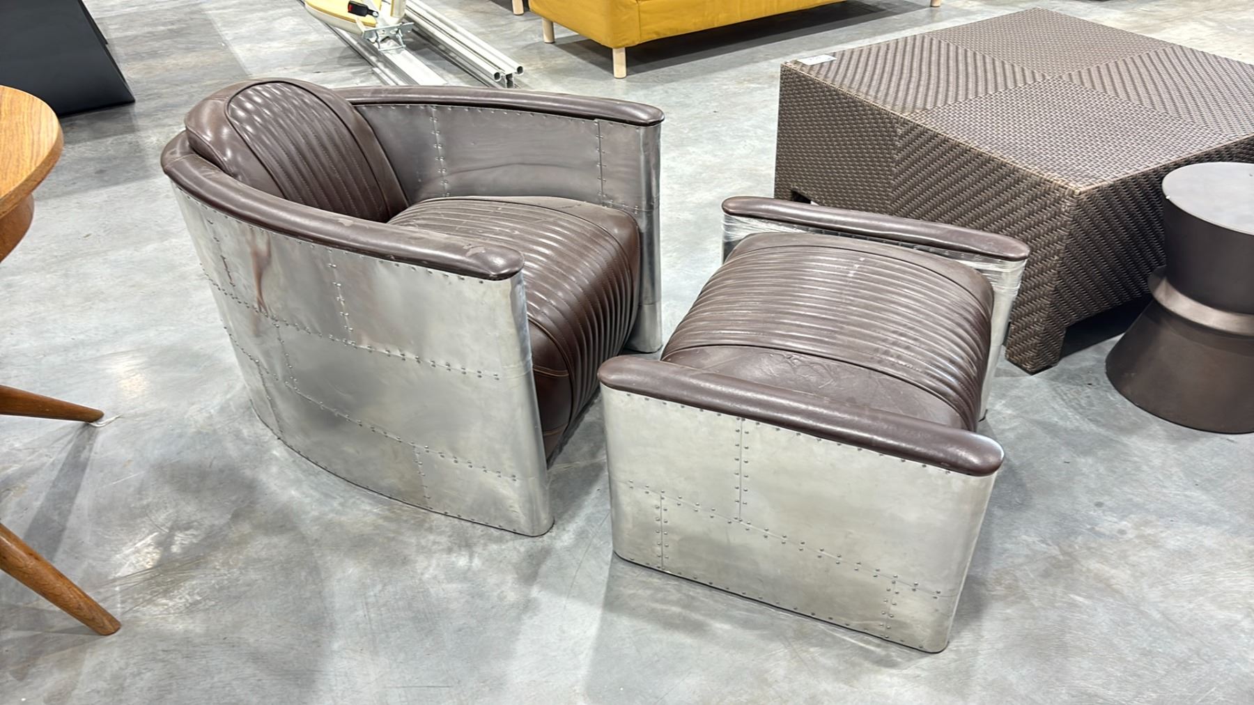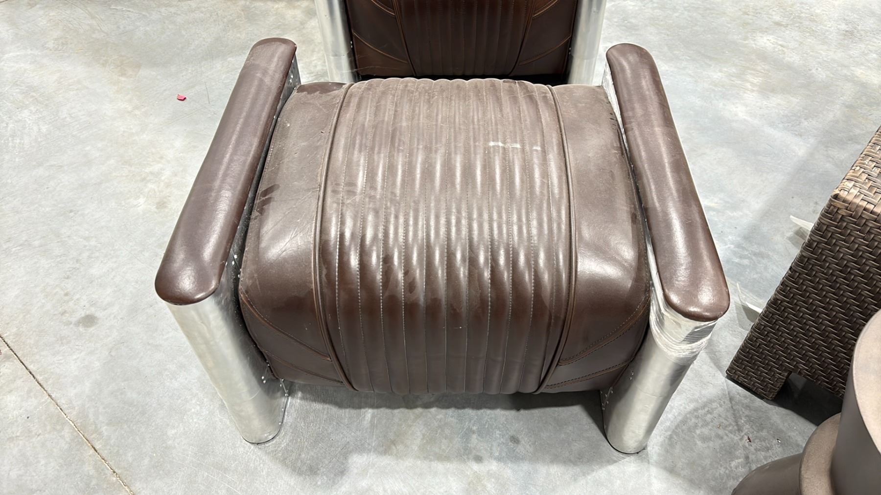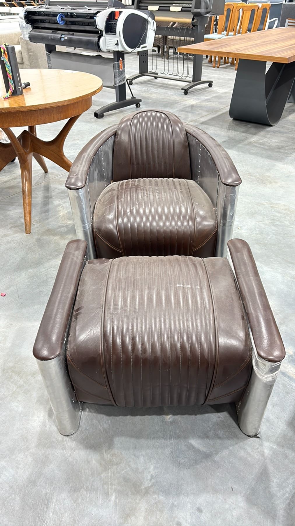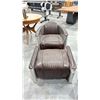 ORIGINAL BROWN LEATHER ARMCHAIR WITH OTTOMAN