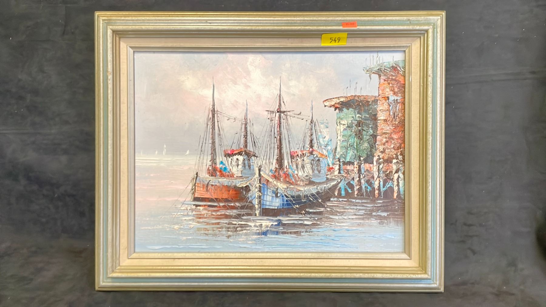 ORIGINAL OIL ON CANVAS BOAT PAINTING APPROX 20" X 16"