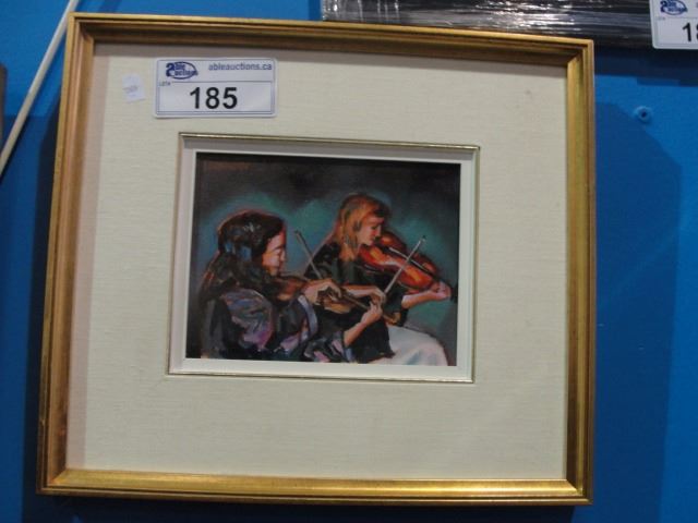 ORIGINAL OIL PAINTING - GIRLS PLAYING FIDDLE