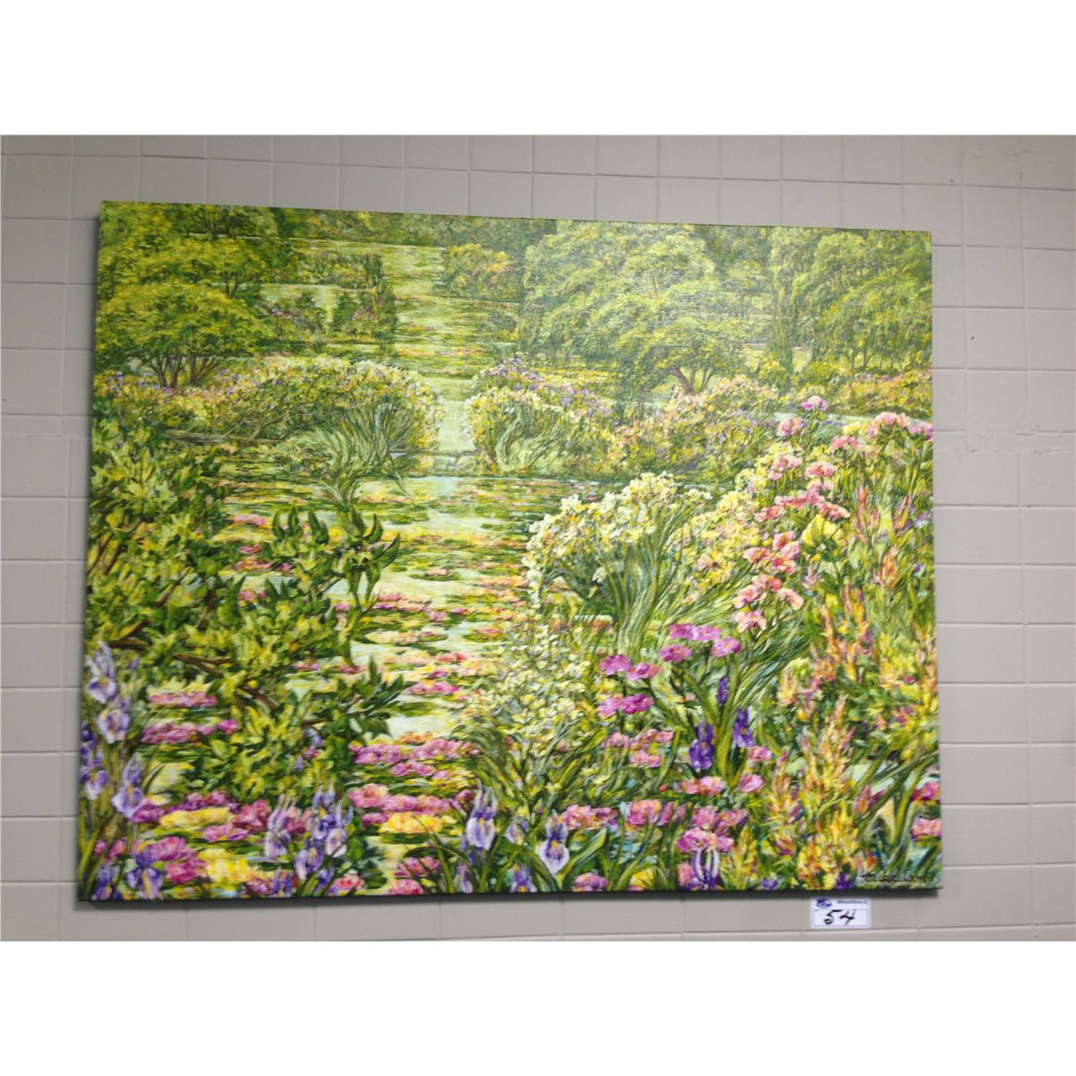 ORIGINAL OIL PAINTING ON CANVAS, POND AND MEADOW. 54`` X 44`` BY MIKKELSON