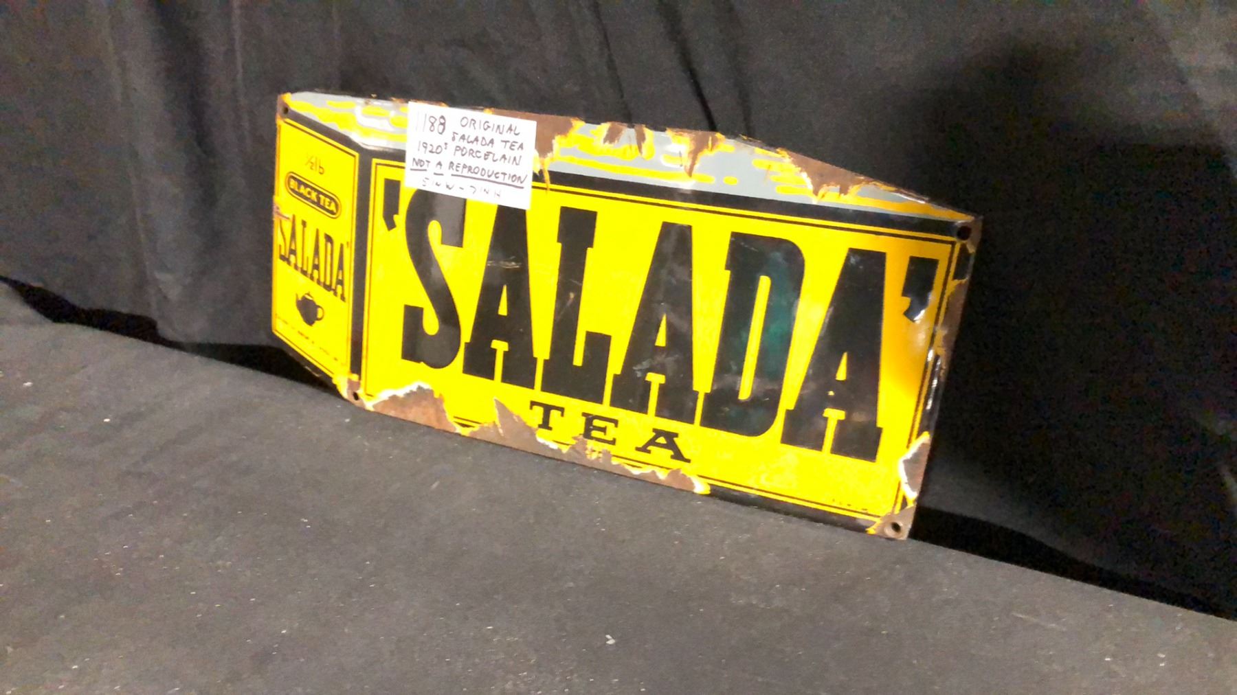 ORIGINAL SALADA TEA 15" X 7" PORCELAIN 1920'S NON-REPRODUCTION SIGN