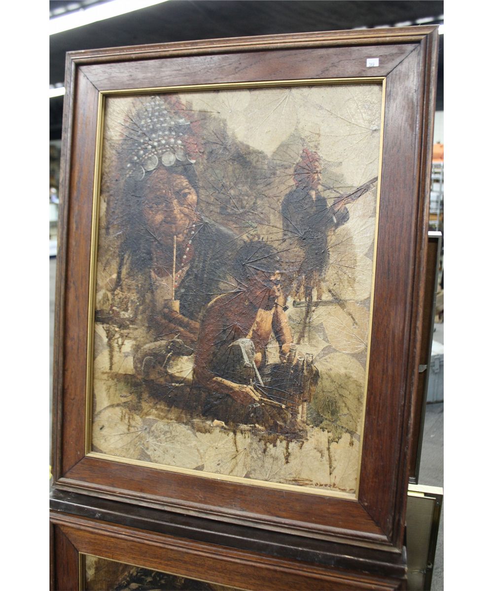 ORIGINAL THAILAND PAINTINGS ON BODI LEAVES 23" X 17" H SIGNED LOWER RIGHT "ZAMSKI"