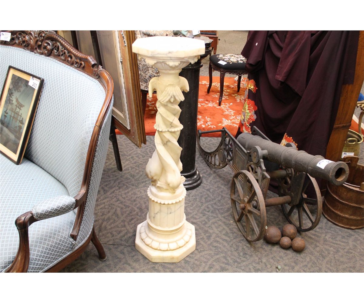ORNATE ALABASTER CARVED PLANT STAND 45" HIGH