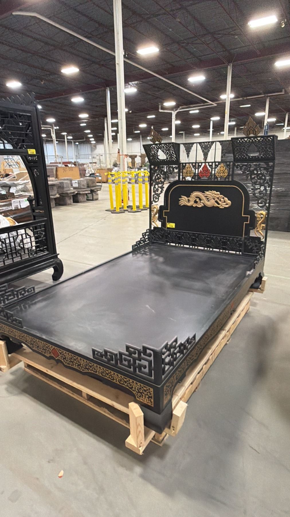 ORNATE CHINESE DRAGON MOTIF DOUBLE SIZE BED FRAME