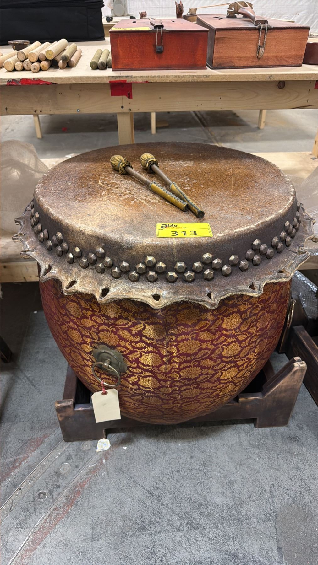 ORNATE DRUM WITH STICKS