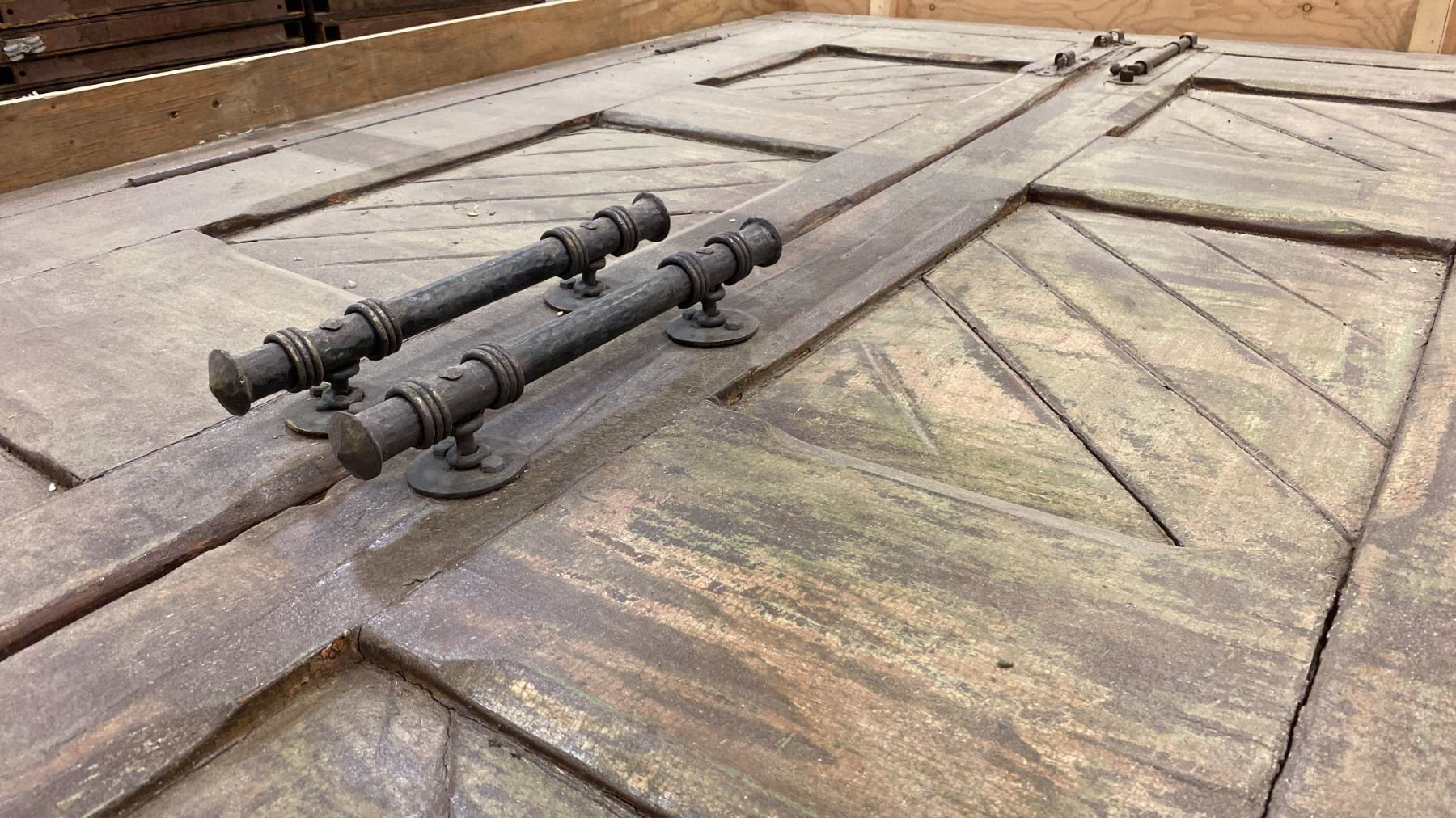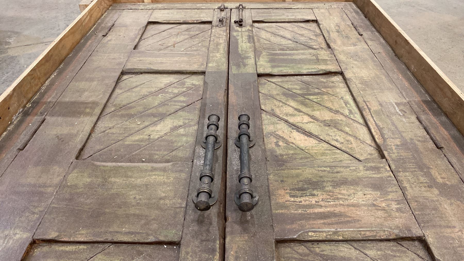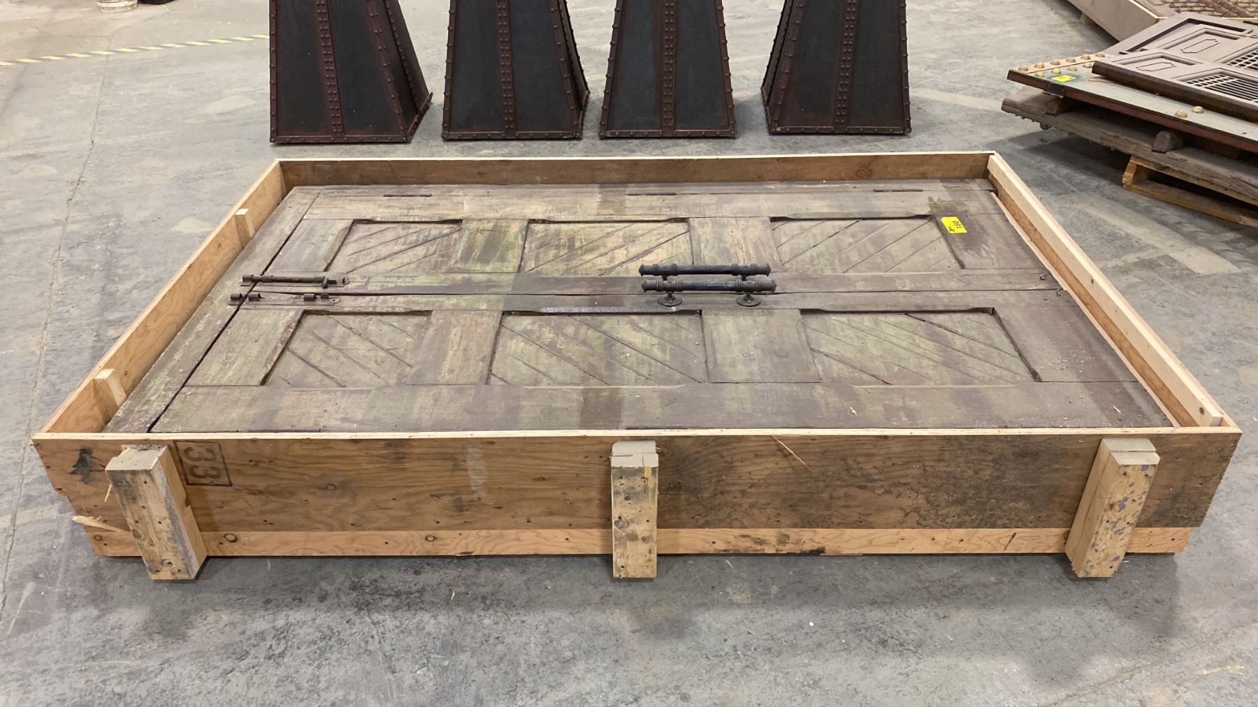 ORNATE FRAMED WOOD DOUBLE DOOR 94"H X 58" W