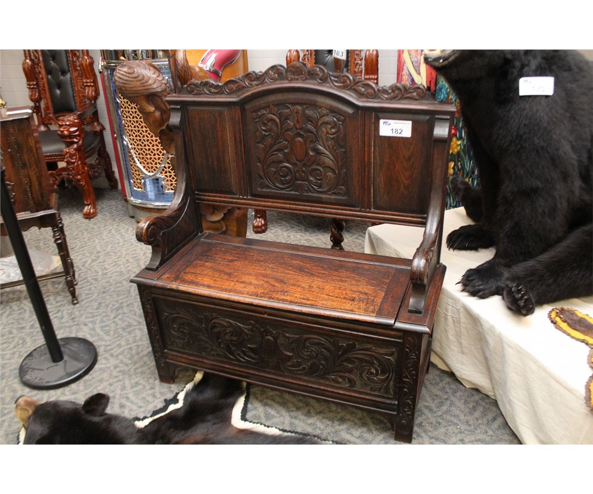 ORNATELY CARVED VICTORIAN HALL BENCH