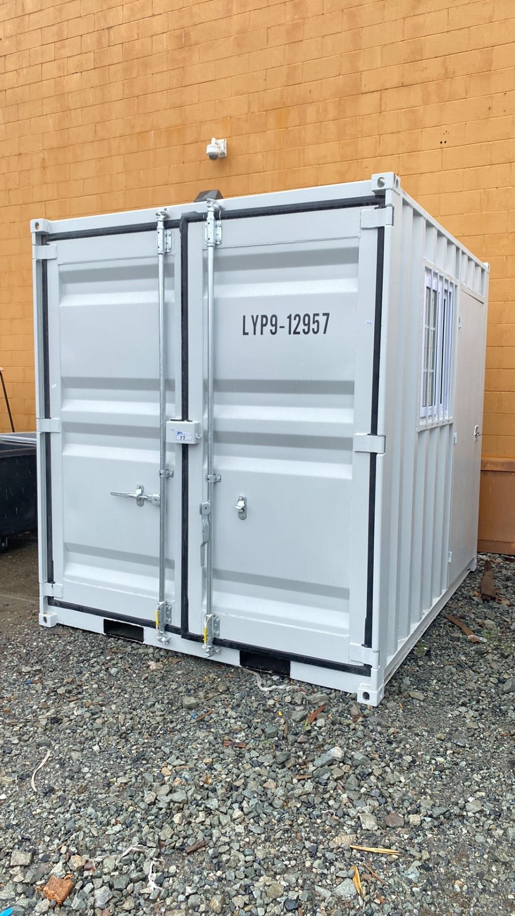 *OS* 9FT GREY OFFICE STORAGE SHIPPING CONTAINER 107.5"L X 88"W X 98.5"H WITH DUAL SWING REAR DOORS W/CAMS, SIDE MAN DOOR & WINDOW