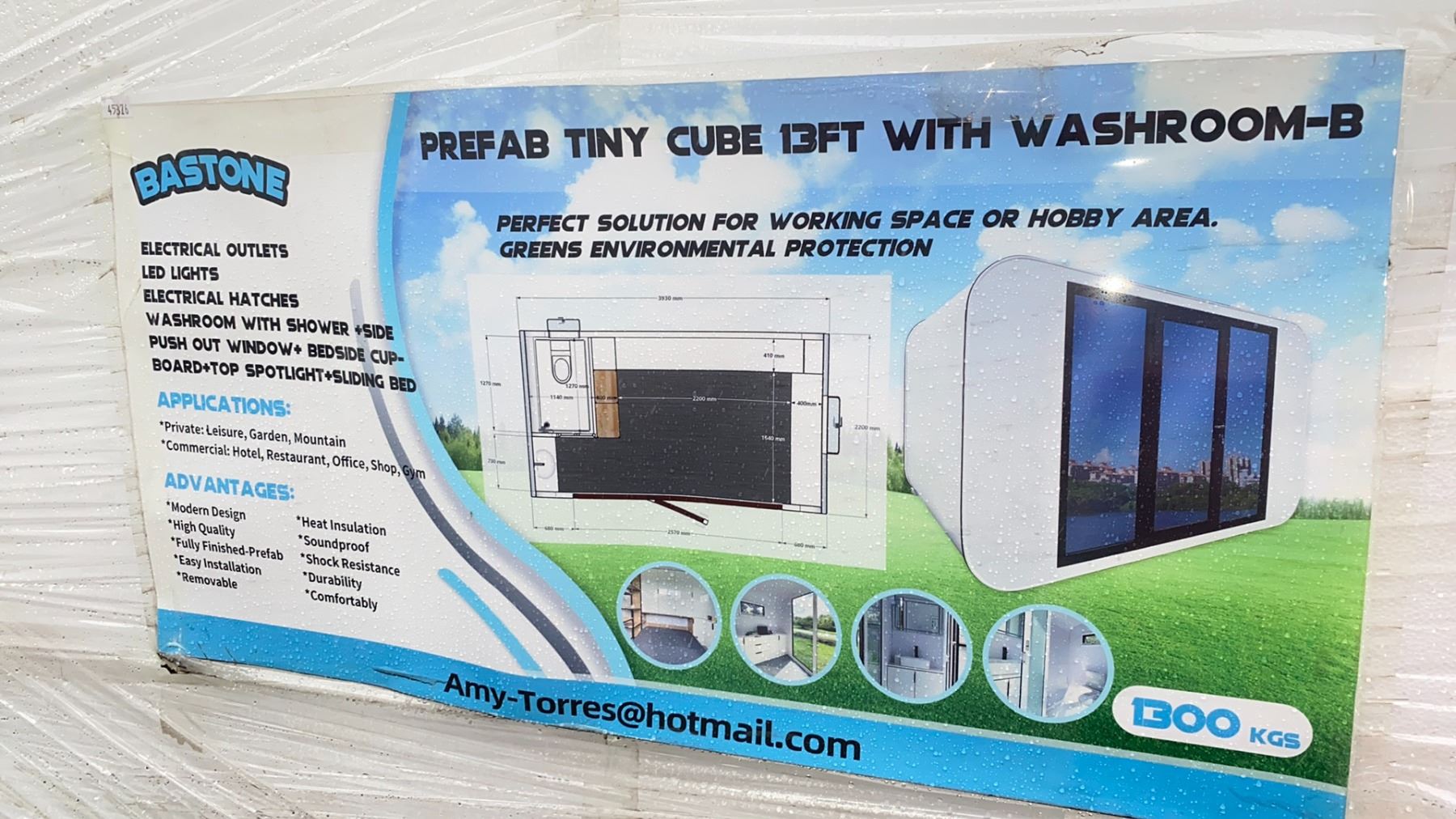 *OS* BASTONE 13FT PREFAB TINY CUBE WITH BATHROOM & SHOWER, ELECTRICAL OUTLETS, LED LIGHTS,