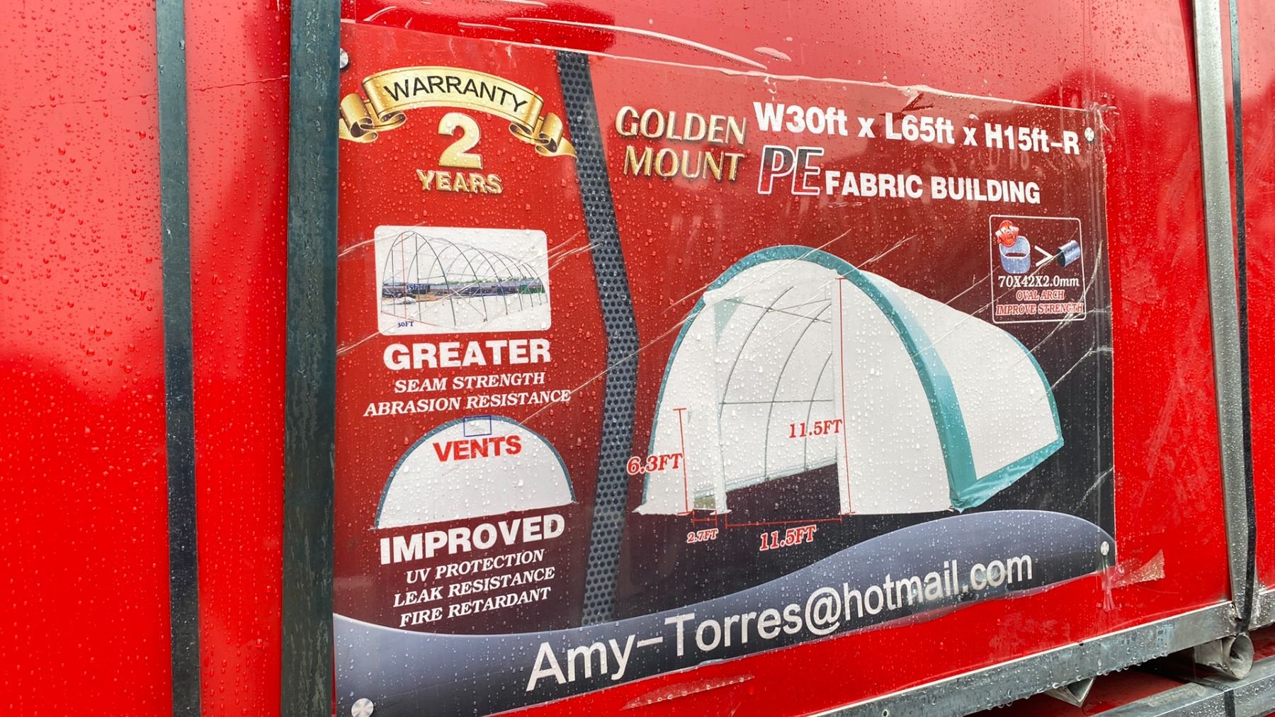 *OS* GOLDEN MOUNT PE FABRIC BUILDING 30'W X 65'L X 15'H WITH VENTS *IMPROVED UV PROTECTION/LEAK RESISTANCE/FIRE RETARDANT*