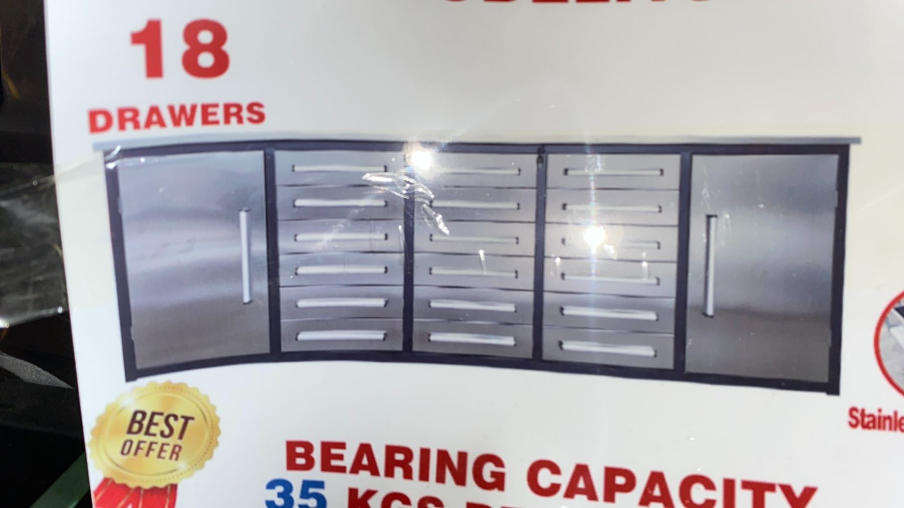*OS* STEELMAN STAINLESS STEEL 18 DRAWER 2 DOOR 10' WORKBENCH 35KGS BEARING CAPACITY PER DRAWER