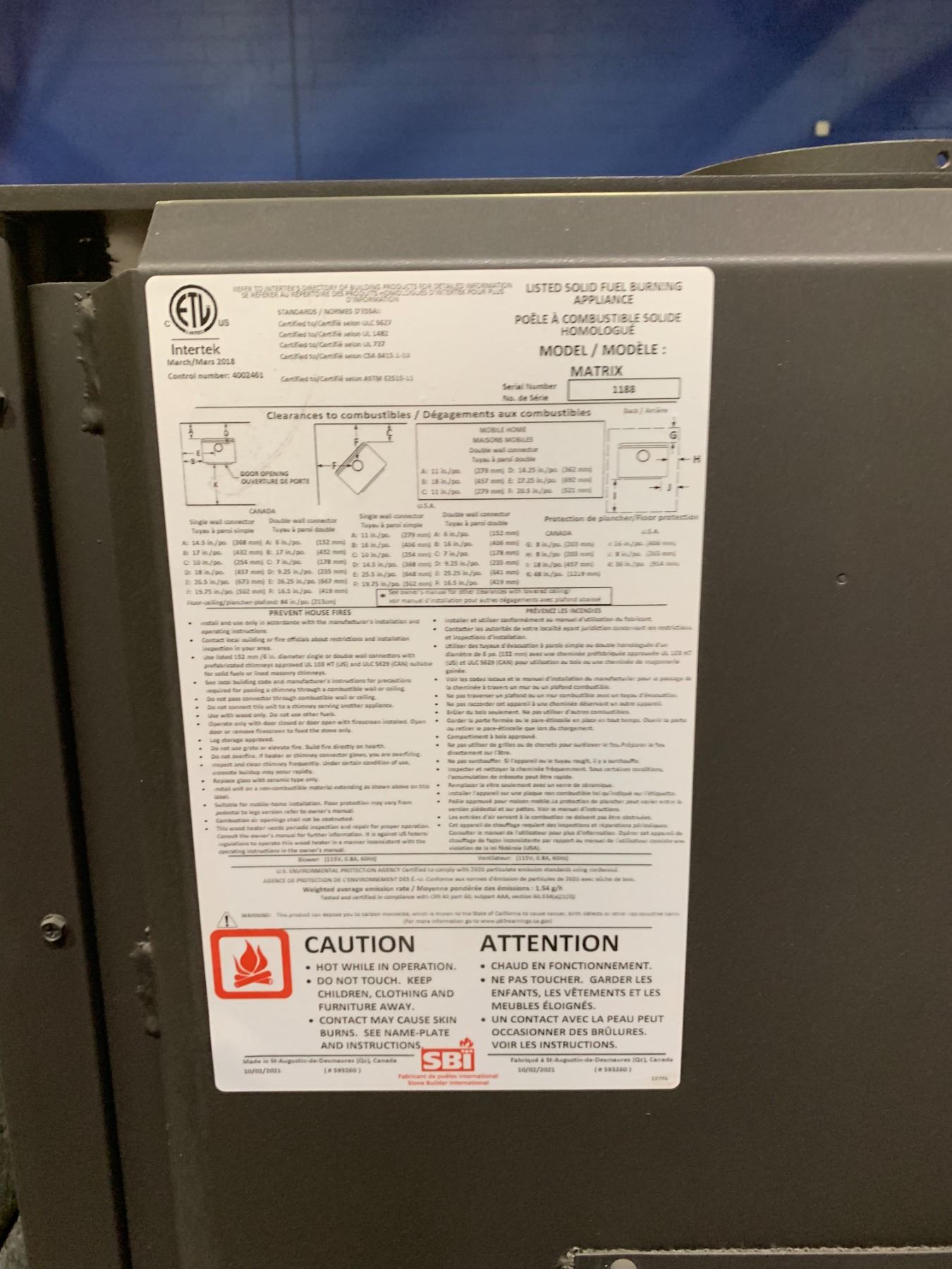 OSBURN MATRIX WOOD STOVE WITH BLOWER (FREIGHT DAMAGED)