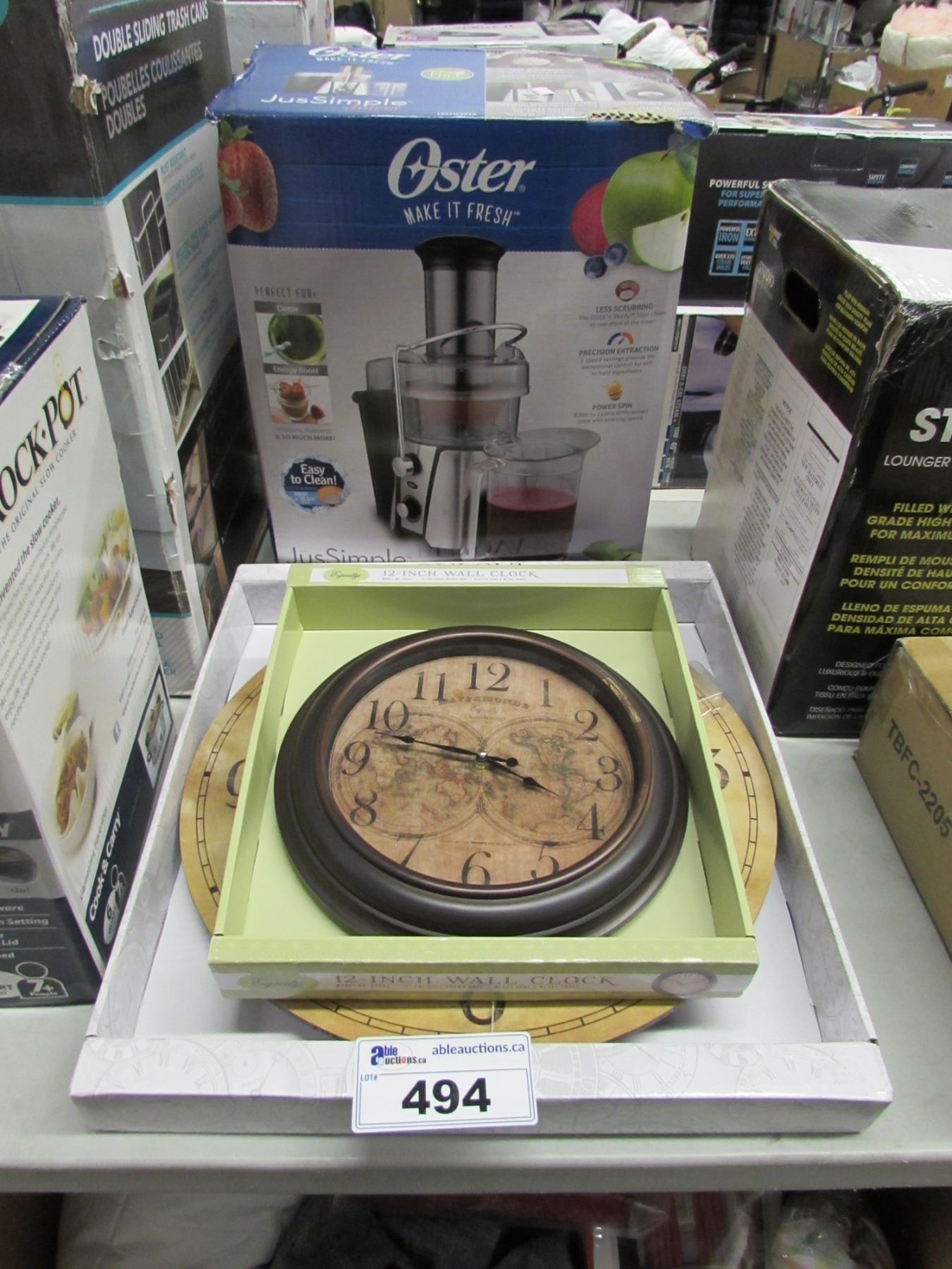OSTER JUICER, 12" WALL CLOCK, BULOVA WALL CLOCK