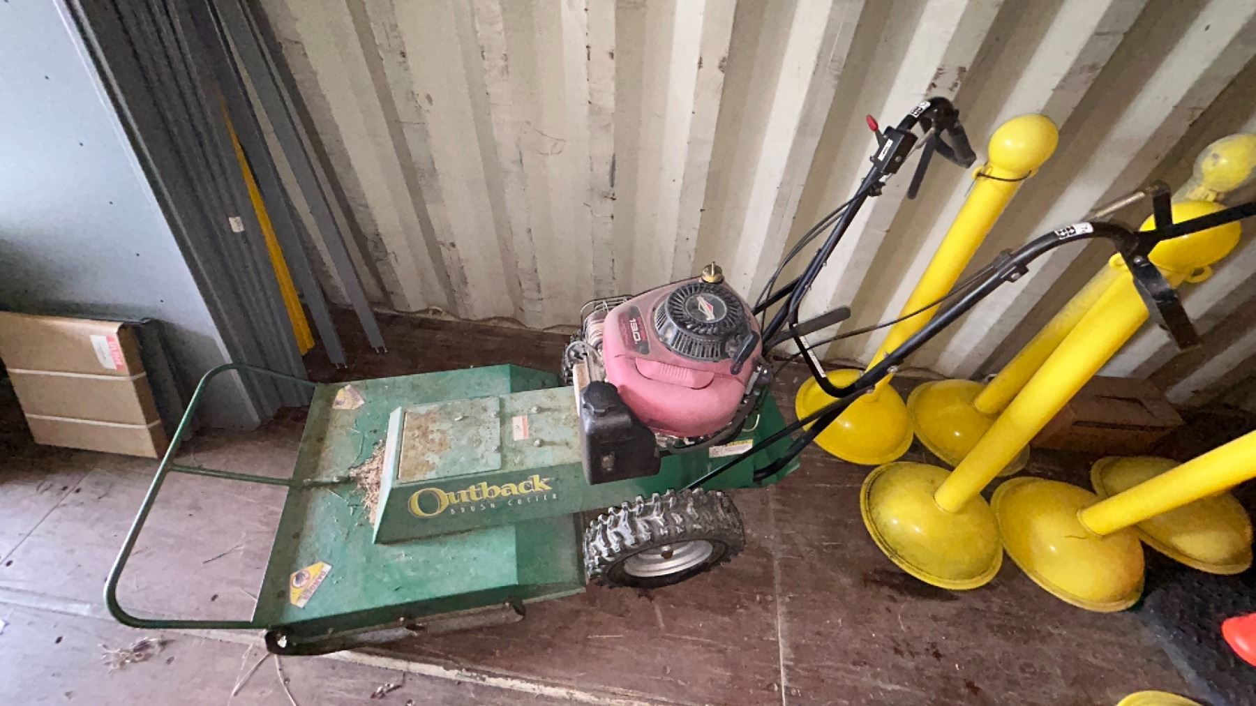 OUTBACK BRUSH CUTTER 26"W 13HP BRIGGS & STRATTON. LOOKS DIRTY BUT TOLD IT WORKS WELL LOCATED IN CONTAINER