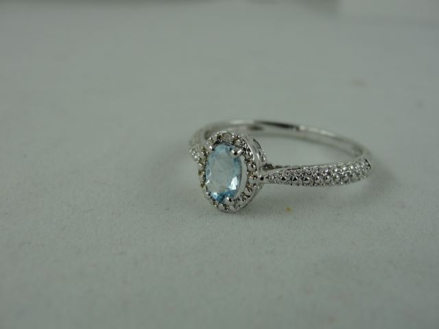OVAL CUT SKY BLUE TOPAZ RING SET WITH GENUINE DIAMOND. RHODIUM FINISH