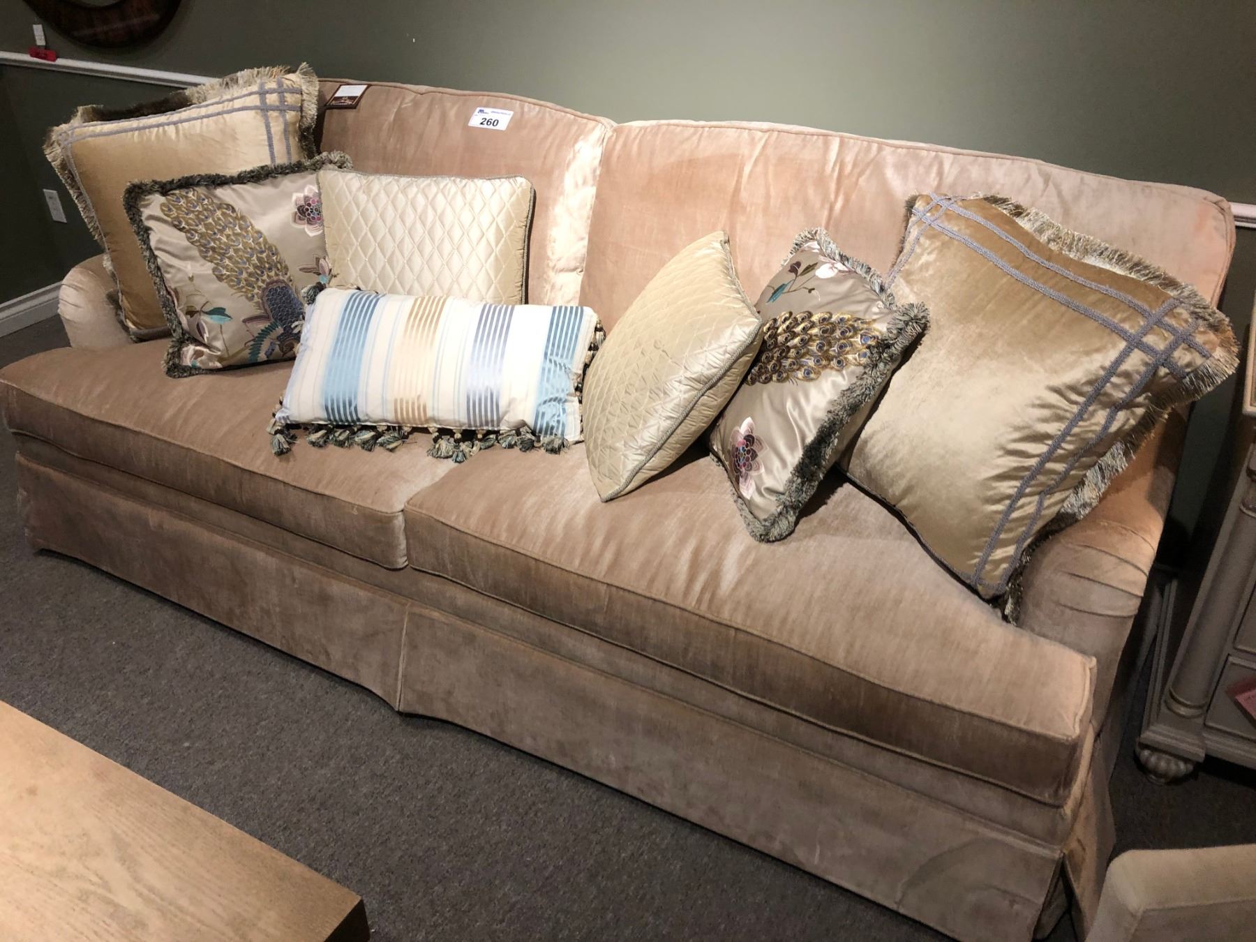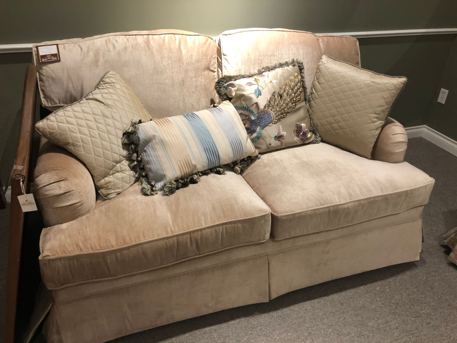 OVERSTUFFED SOFA AND LOVESEAT SET WITH THROW CUSHIONS. RETAIL $6,500.00