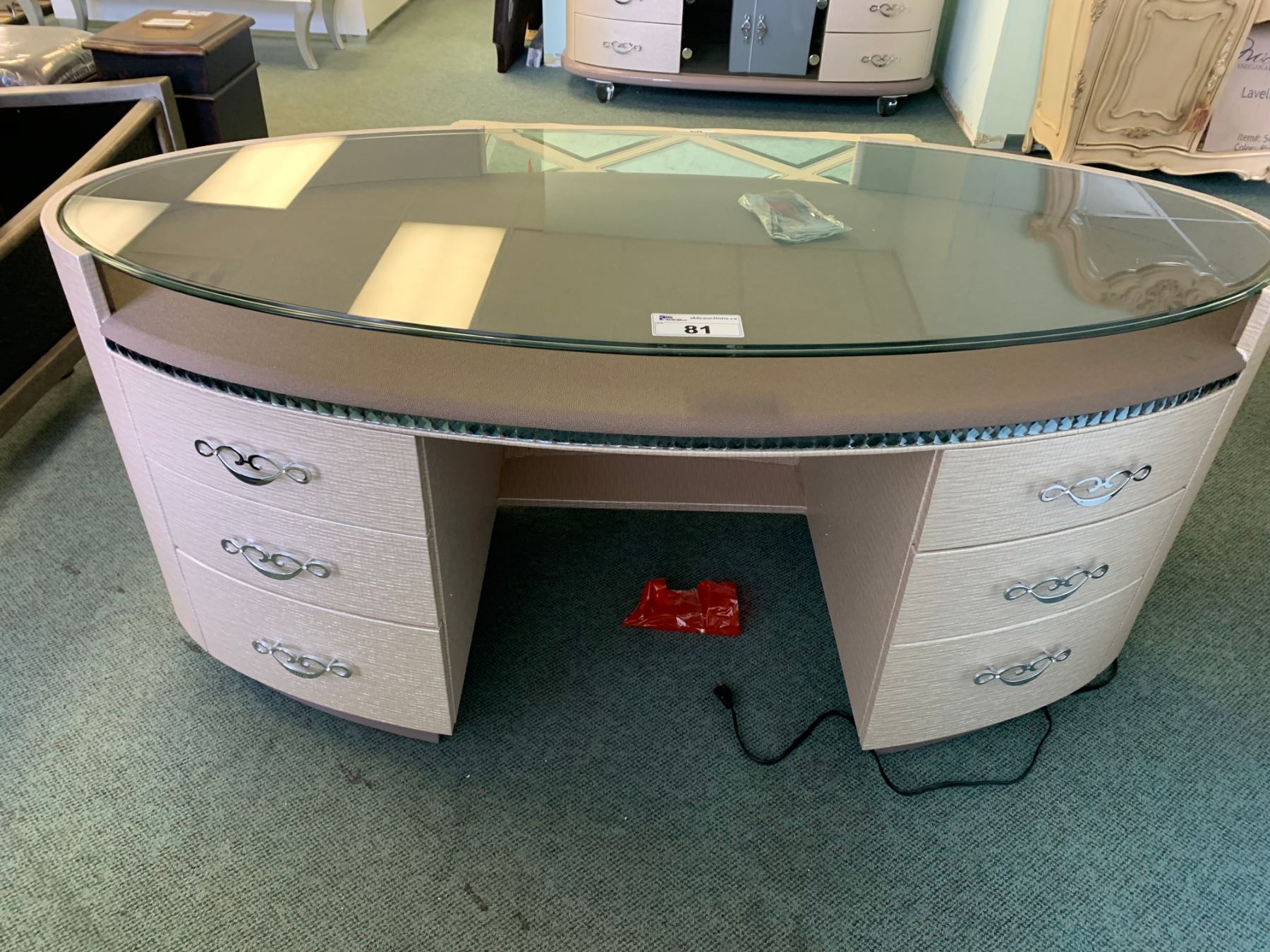 OVERTURE CRISTAL GLASS TOP 6 DRAWER VANITY WITH 4 DOOR STORAGE CREDENZA