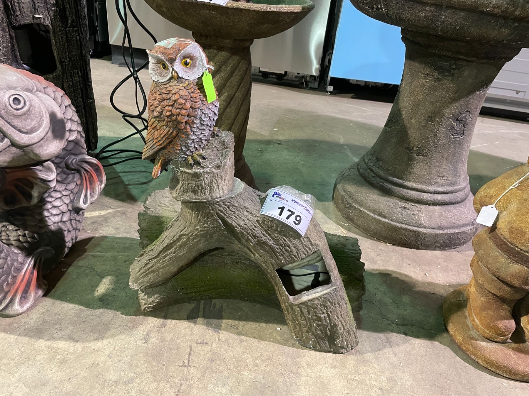 OWL ON LOG DECORATIVE WATER FOUNTAIN 21"H