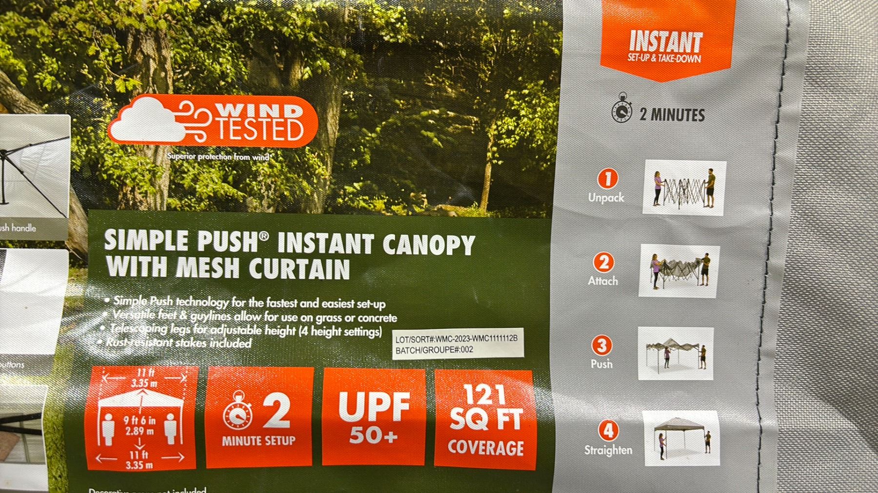 OZARK TRAIL INSTANT CANOPY WITH MESH CURTAIN SIMPLE PUSH, 11FT WIDE X 9FT6" TALL