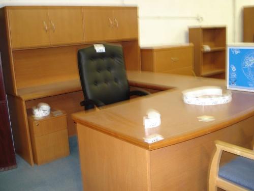 Oak Bowfront U-Shaped Executive Suite W/hutch