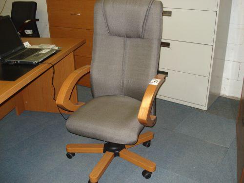 Oak Framed Beige Cloth Highback Gaslift Chair