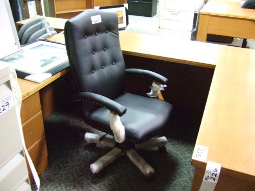 Oak Framed Black Leather Traditional Hi-back Executive Knee Tilter