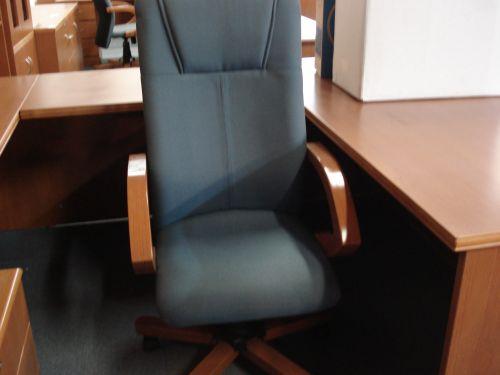 Oak Framed Blue Cloth Highback Gaslift Chair