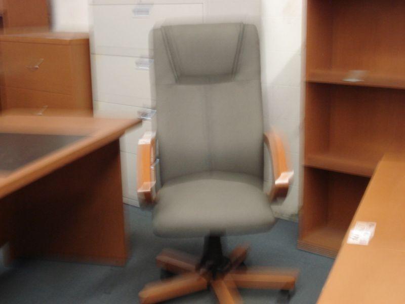 Oak Framed Tan Cloth Highback Gaslift Chair