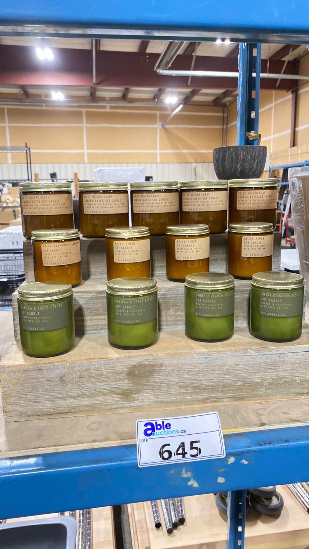 P.F. CANDLE CO SOY CANDLES IN ASSORTED FRAGRANCES AND RETAIL DISPLAY STAND
