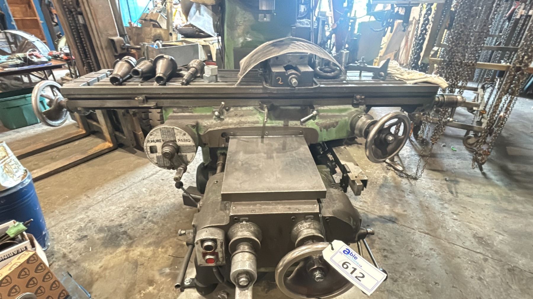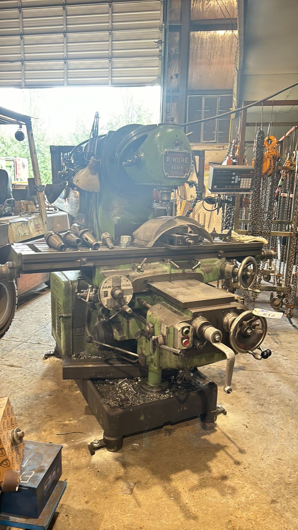 P HURE PARIS 24701 UNIVERSAL VARIABLE SPEED MILLING MACHINE WITH WITH A MITUTOYO KA-200 CONTROL -PANEL COUNTER ASSORTED TOOL HOLDERS INCLUDED **REMOVAL OF THIS MACHINE REQUIRES HIAB/CRANE LIFT AND HEAVY MOVING SKATES**