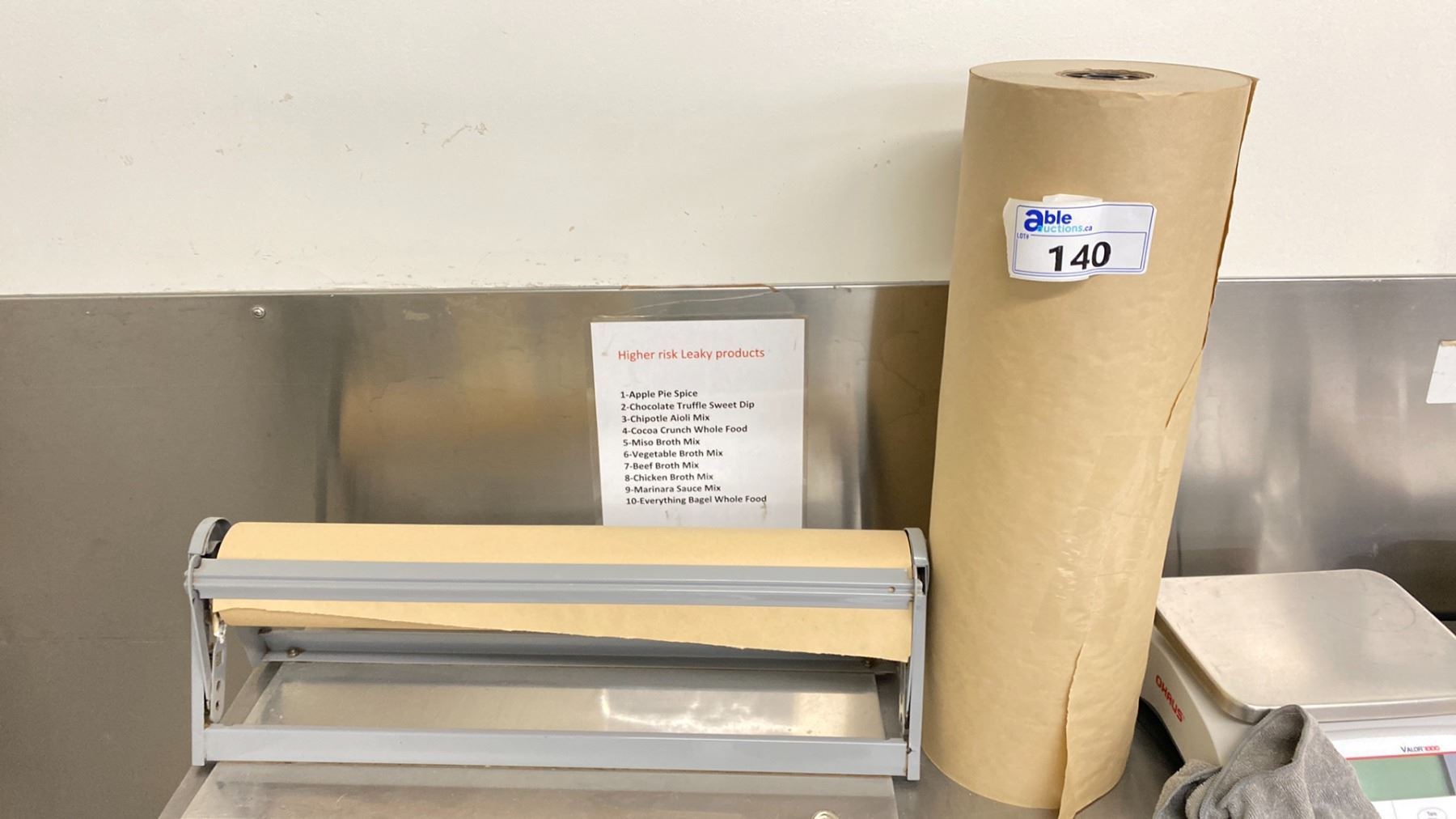 PACKAGING PAPER DISPENSER 24" WITH EXTRA FULL ROLL. LOCATED IN BOTTLING ROOM 1