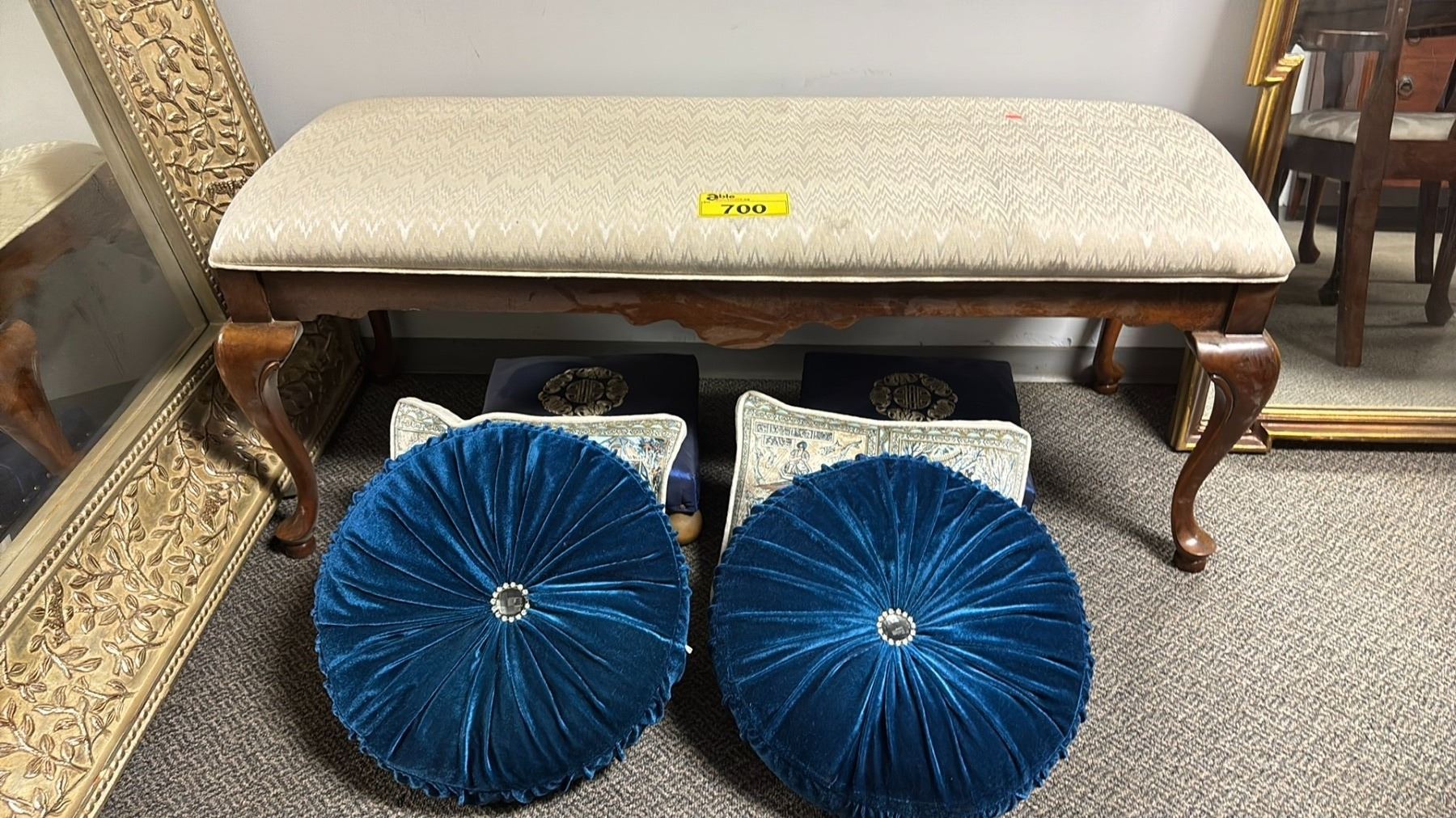 PADDED BENCH 47" X 17" X 19" WITH ASSORTED CUSHIONS