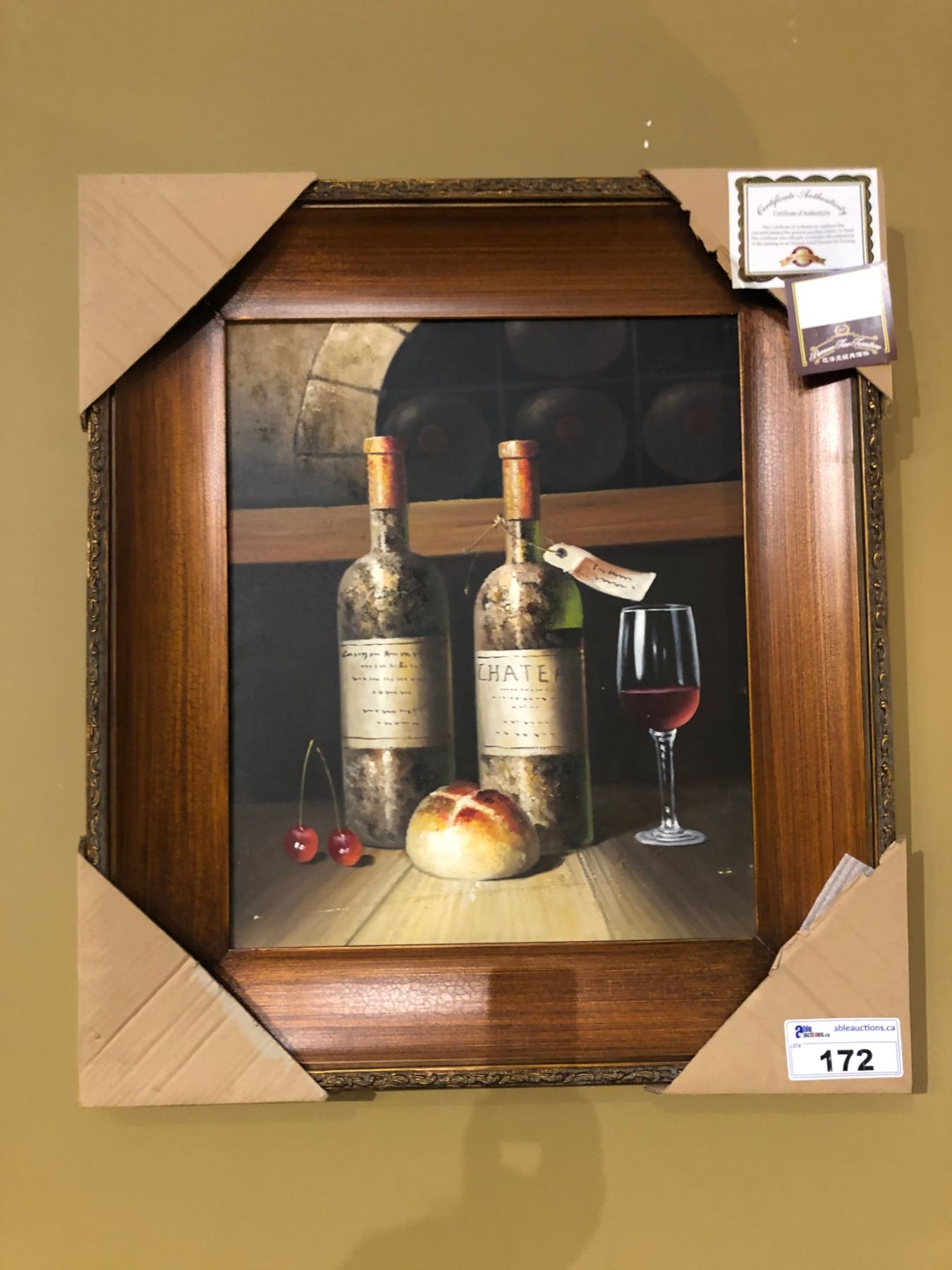PAINTED ARTWORK WITH WOOD FRAME AND C.O.A. - VINO
