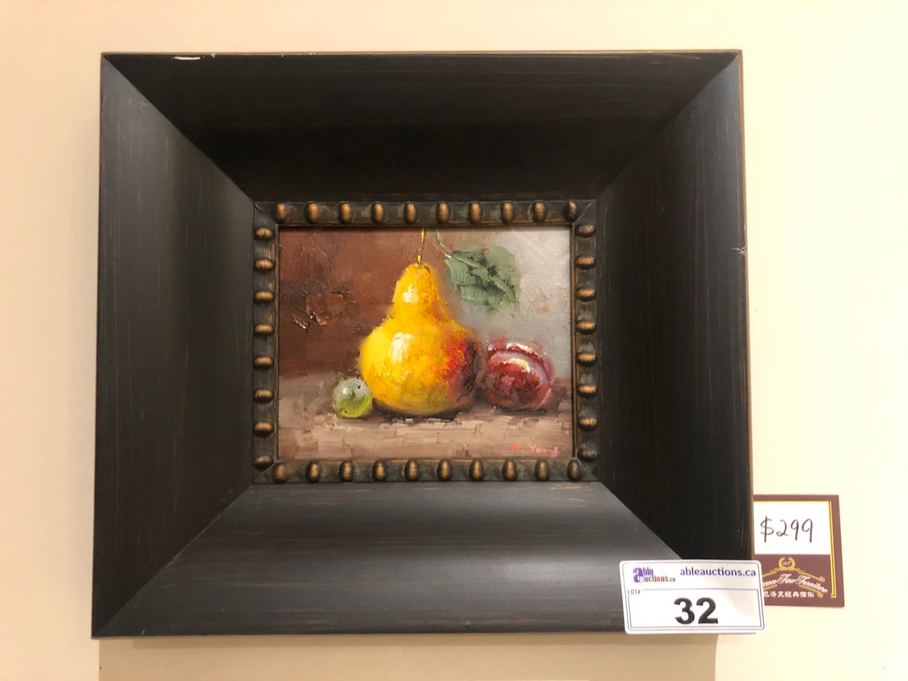 PAINTED ARTWORK WITH WOODEN FRAME - PEAR WITH FRUIT