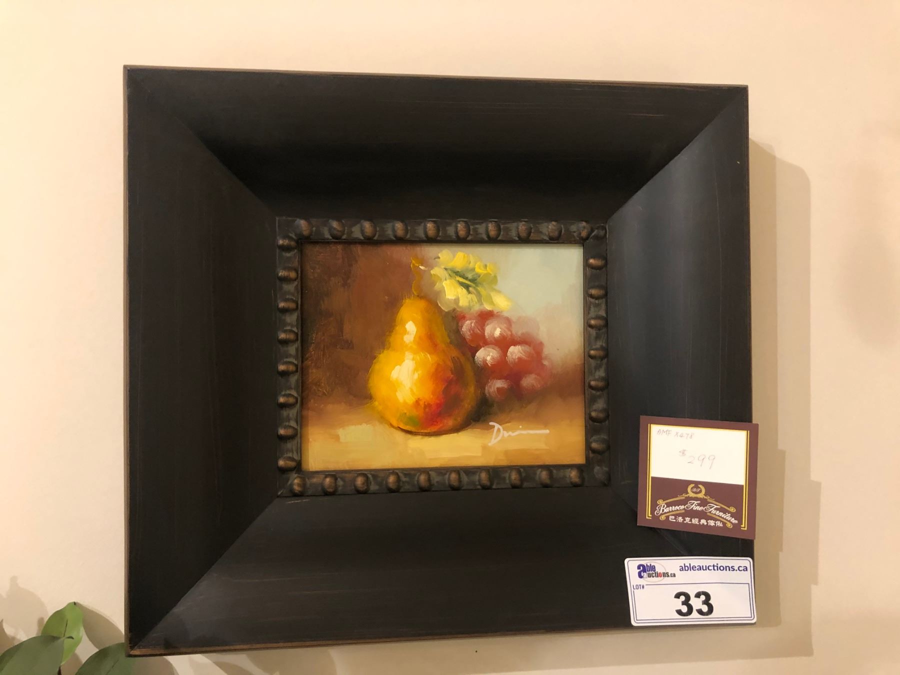 PAINTED ARTWORK WITH WOODEN FRAME - PEAR WITH FRUIT