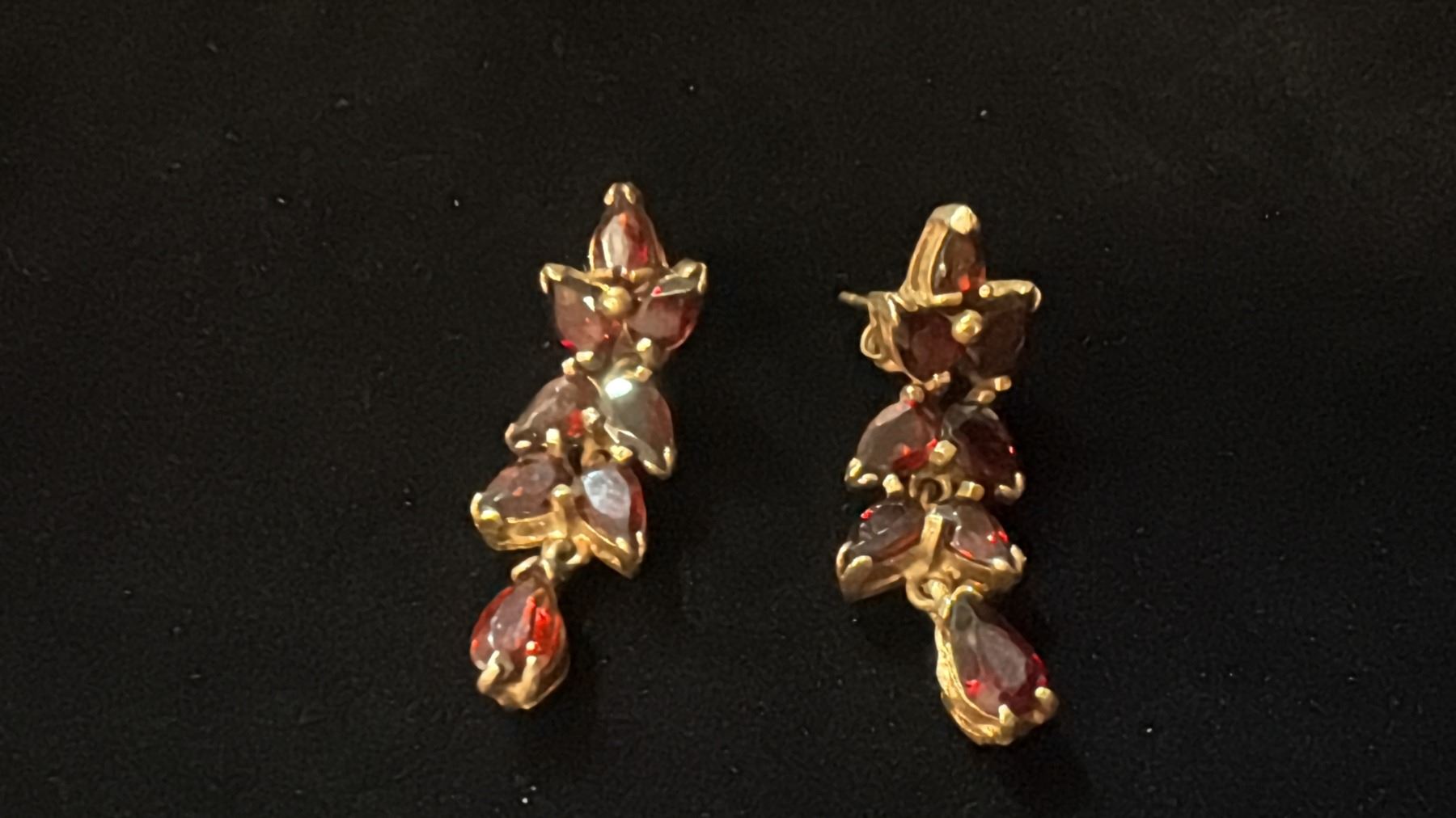 PAIR APPROX 14K EARRINGS SET WITH GARNETS (6G)