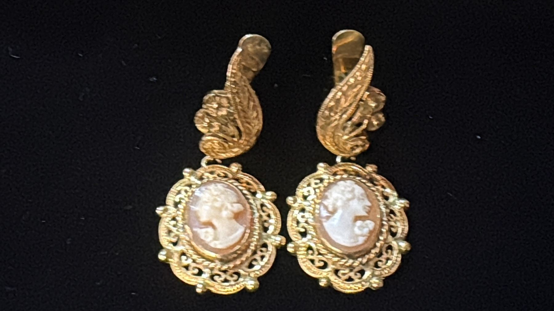 PAIR APPROX 14K EARRINGS SET WITH SHELL CAMEOS (10G)