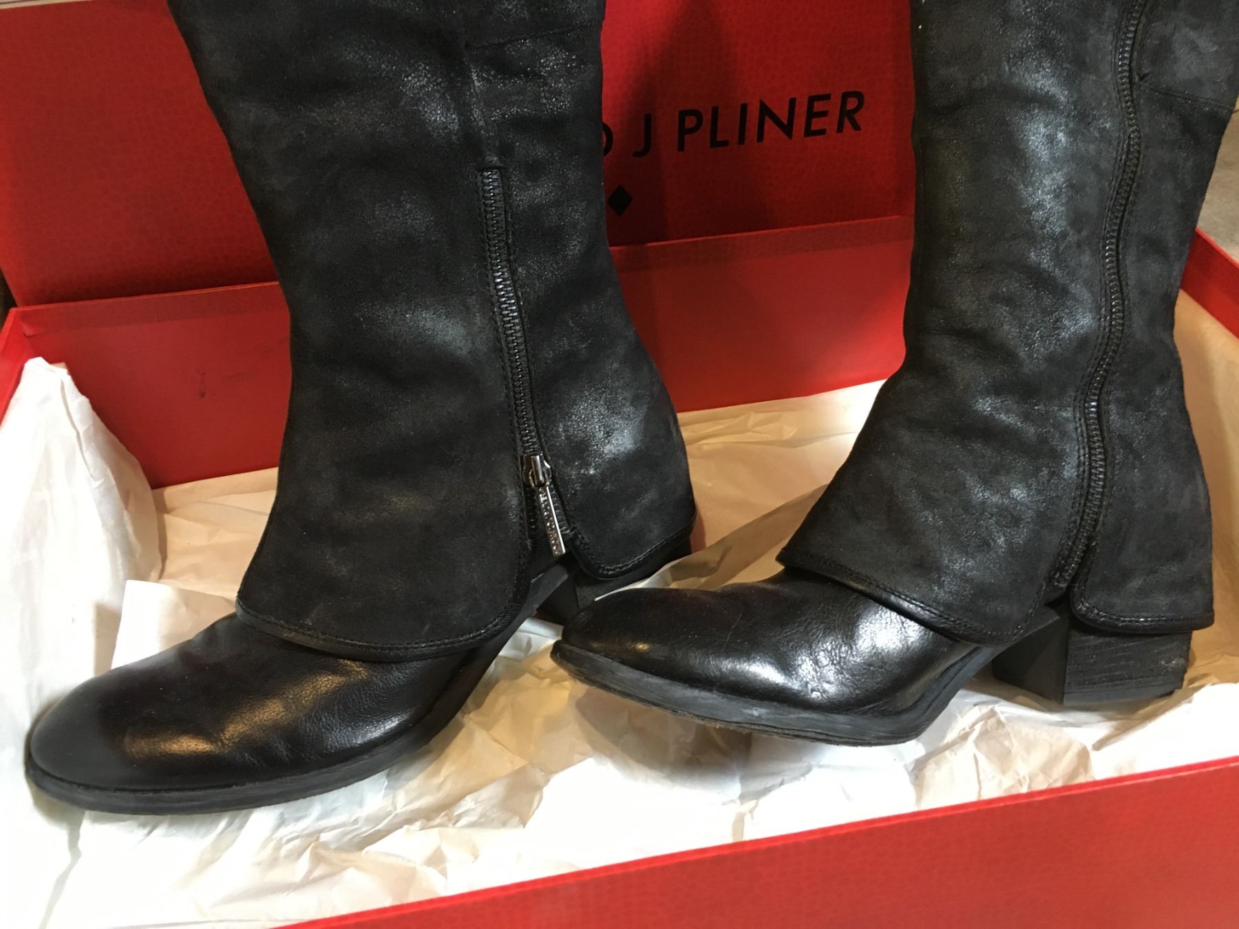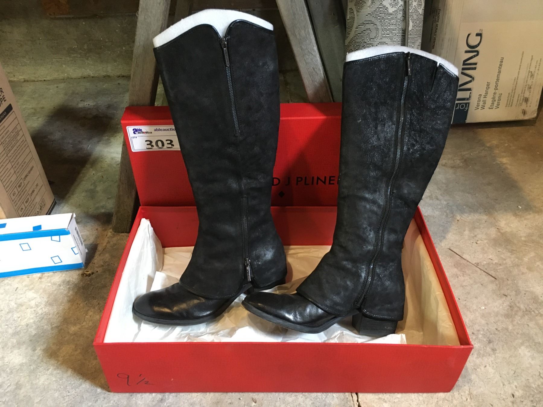 PAIR DONALD J PLINER LADIES SIZE 9.5 BLACK LEATHER BOOTS