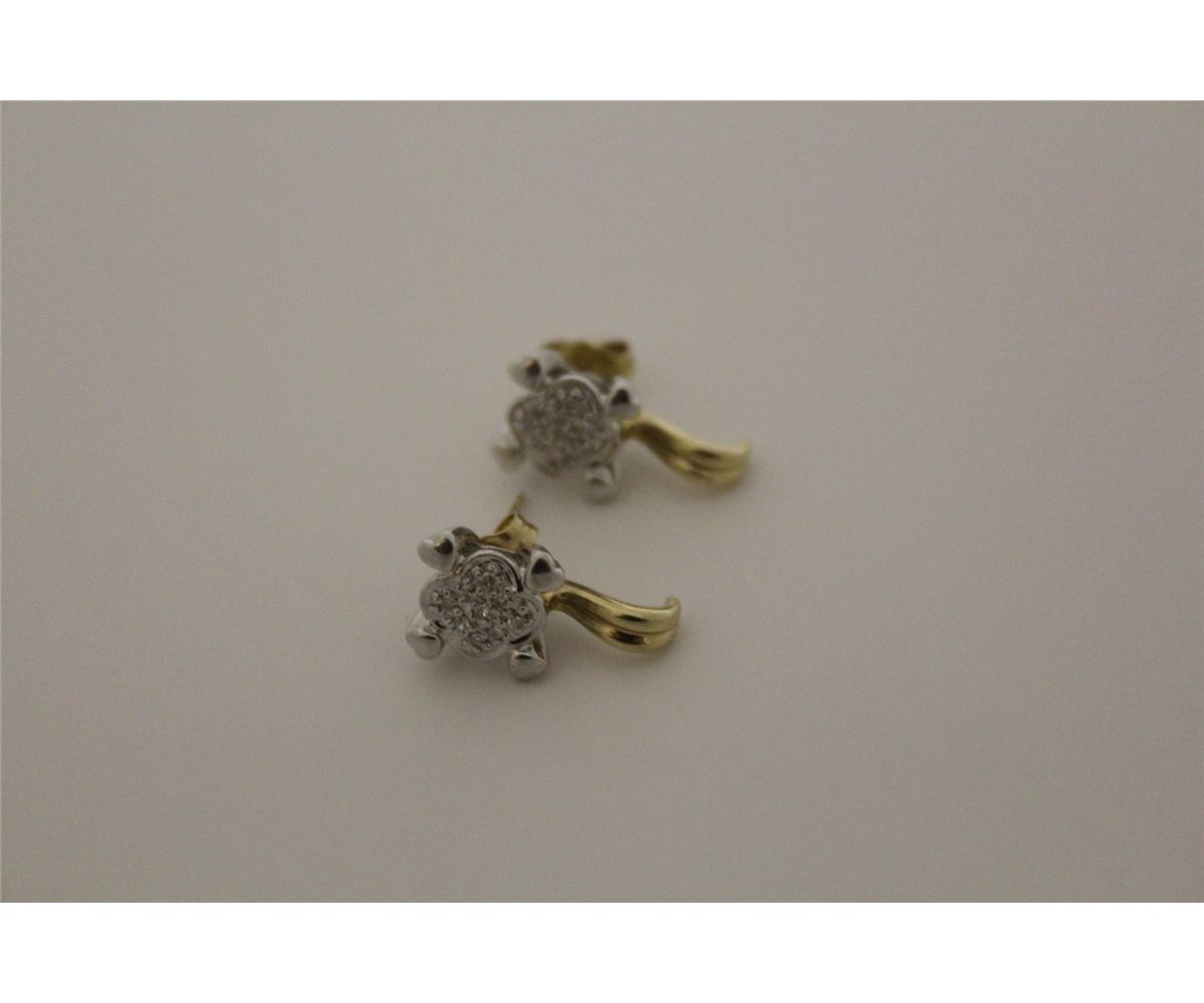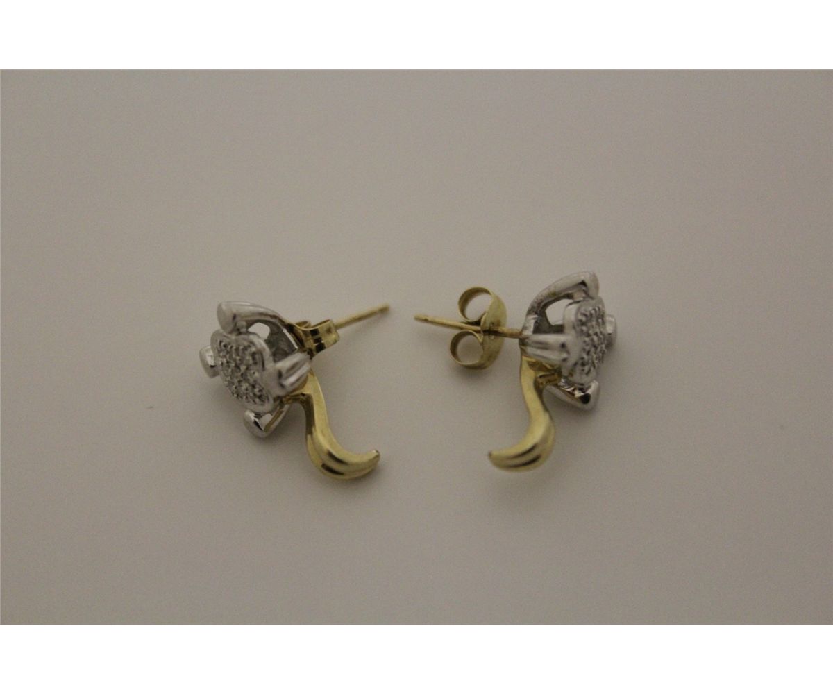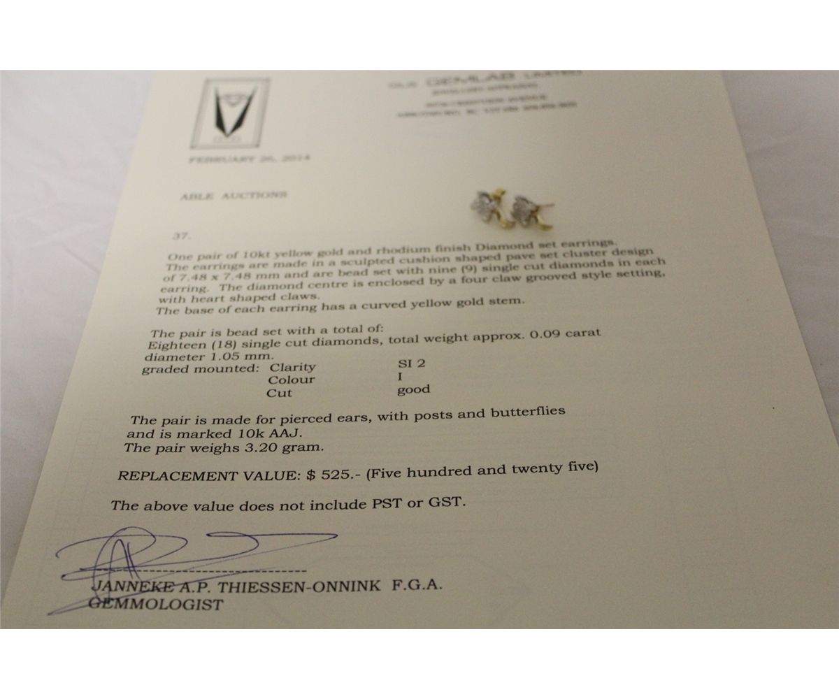 PAIR OF 10KT. YELLOW GOLD & RHODIUM FINISH DIAMOND SET PIERCED EARRINGS. IS A PAVE SET CLUSTER DESIGN WITH 18 SINGLE CUT DIAMONDS, TOTAL WEIGHT APPROX. 0.09 CARATS. VALUE $525.00