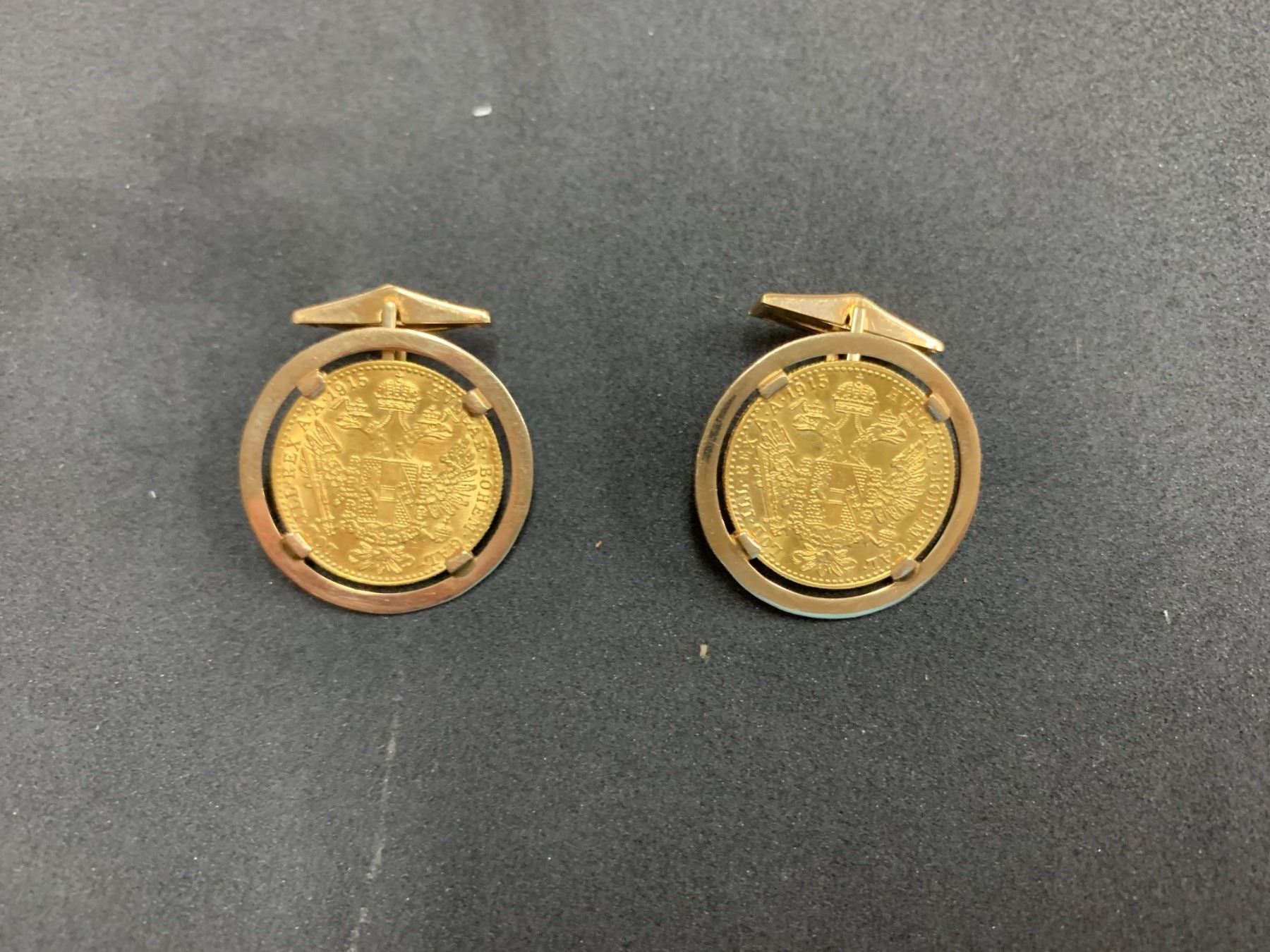PAIR OF 14K YELLOW GOLD CUFFLINKS S/W HUNGARIAN GOLD COINS