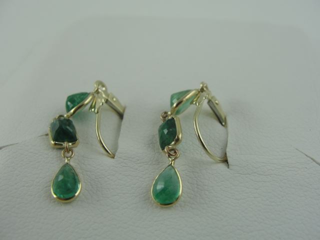 PAIR OF 14K YELLOW GOLD DANGLING NATURAL EMERALD EARRINGS WITH 6 EMERALDS, APPROX 3.00CARATS 0.85CARATREPLACEMENT VALUE $875