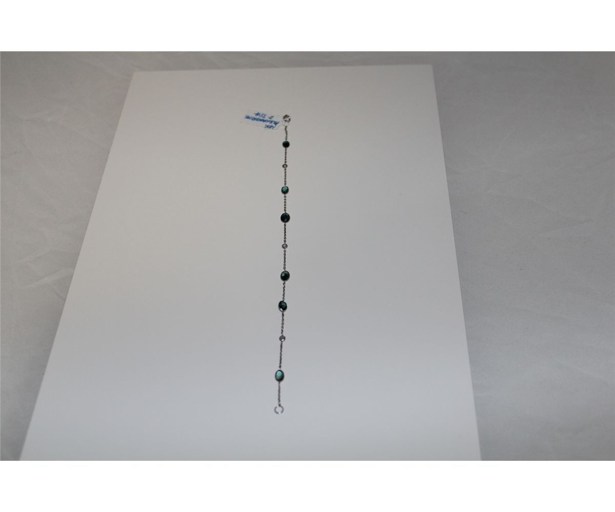 PAIR OF 14KT. WHITE GOLD NATURAL ALEXANDRITE AND DIAMOND SET BRACELET. BEZEL SET WITH A TOTAL OF 6 OVAL MIXED CUT NATURAL ALEXANDRITES AND 3 ROUND BRILLIANT CUT DIAMONDS APPROX. 0.15 CARATS. REPLACEMENT VALUE: $6500.00