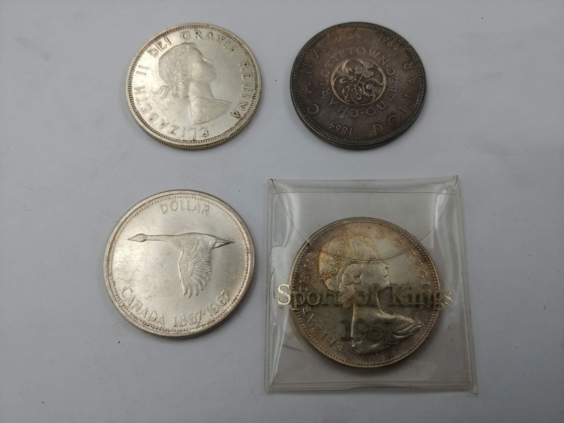 PAIR OF 1967 SPORT OF KINGS CANADA DOLLARS AND PAIR OF CHARLOTTETOWN QUEBEC 1894 CANADA DOLLARS