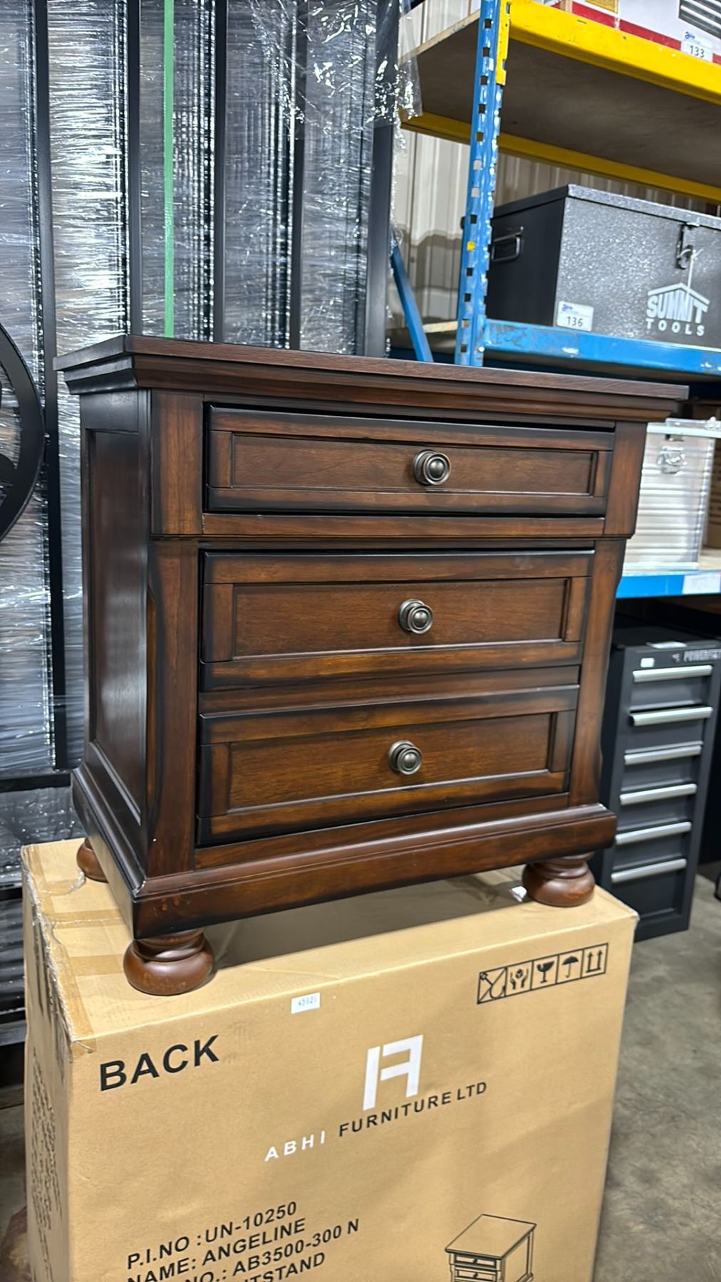 PAIR OF ABHI FURNITURE ANGELINE AB3500-300 N WALNUT 3 DRAWER NIGHTSTANDS *IN BOX, 2 BOXES TOTAL, REQUIRES 2 PEOPLE FOR REMOVAL*