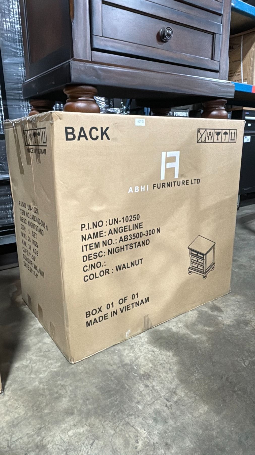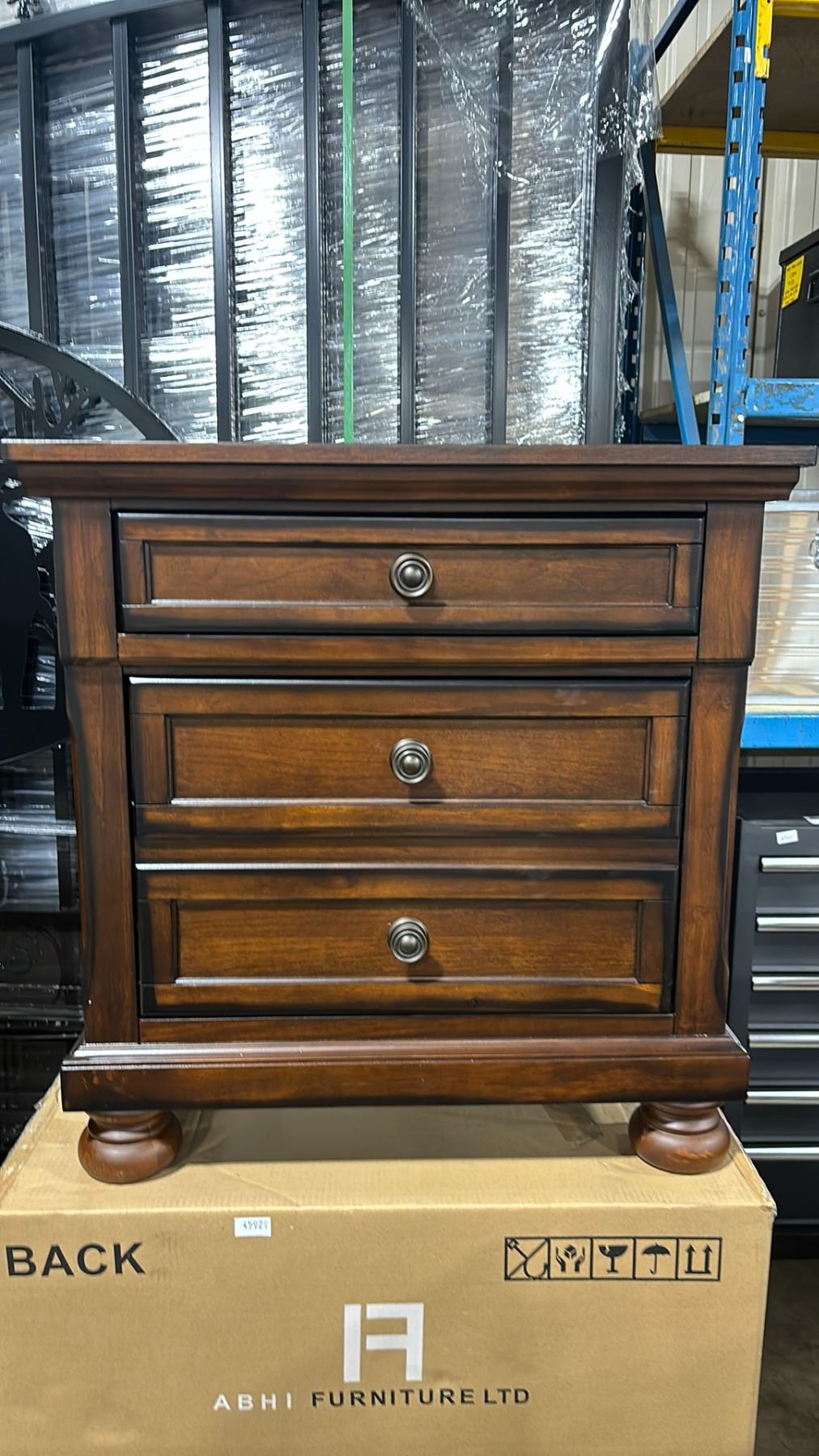 PAIR OF ABHI FURNITURE ANGELINE AB3500-300 N WALNUT 3 DRAWER NIGHTSTANDS *IN BOX, 2 BOXES TOTAL, REQUIRES 2 PEOPLE FOR REMOVAL*