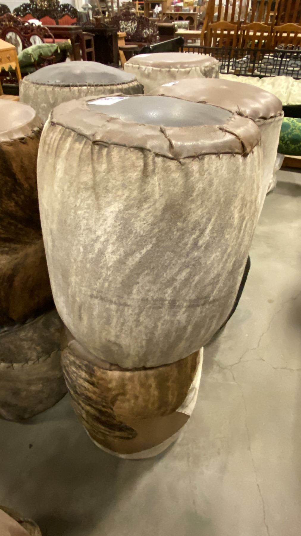 PAIR OF ANIMAL HIDE/LEATHER STOOLS